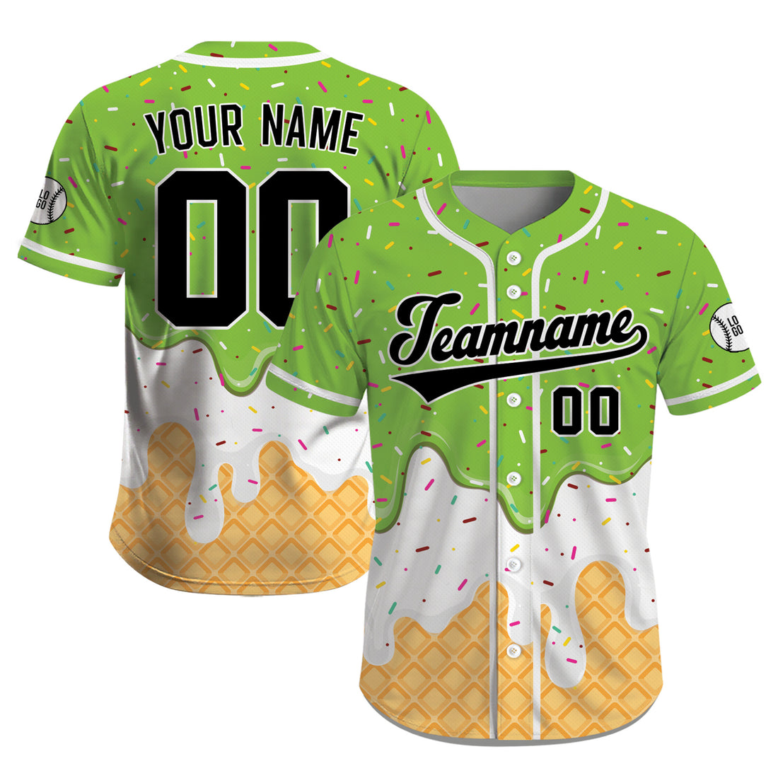 🍦 Custom Lime Green Black Ice Cream Drip Baseball Jersey 🍦Bring summer vibes to life...