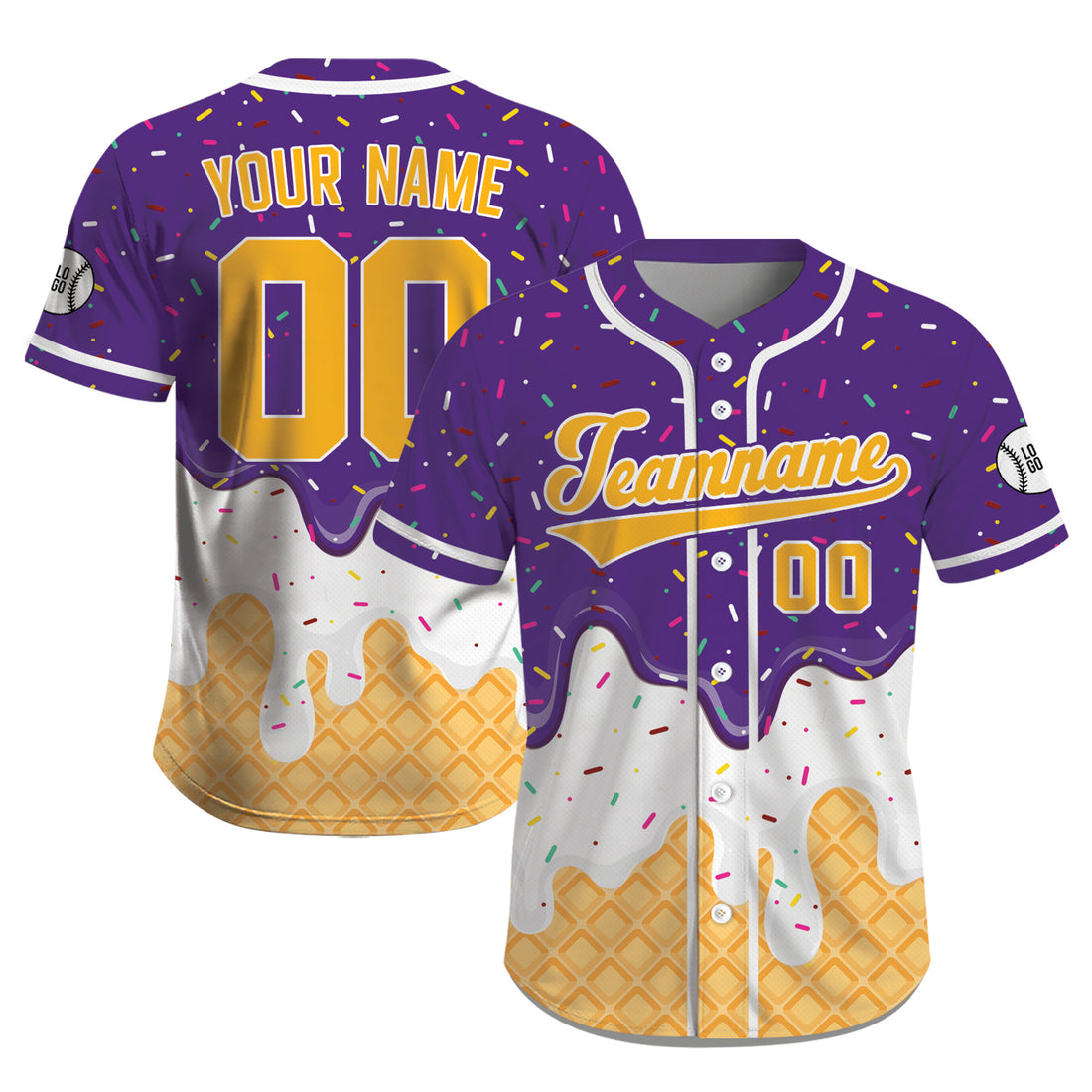 🍦 Custom Purple Yellow Ice Cream Drip Baseball Jersey 🍦Bring summer vibes to life with...