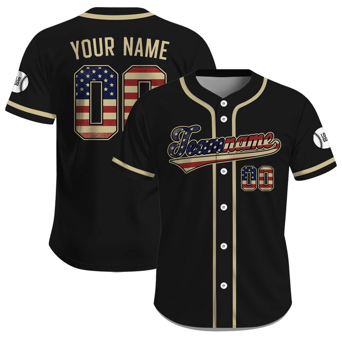 Own Your Patriotism: Custom Midnight Black Gold Patriot USA Freedom Jersey Show your American pride...