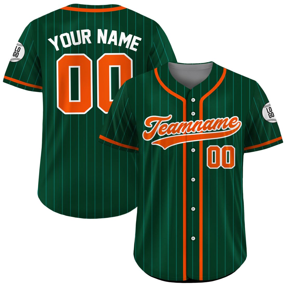 Custom Dark Green and Orange Pinstripe Baseball Jersey, Personalized Team Uniforms for Men, Women & Youth Fans