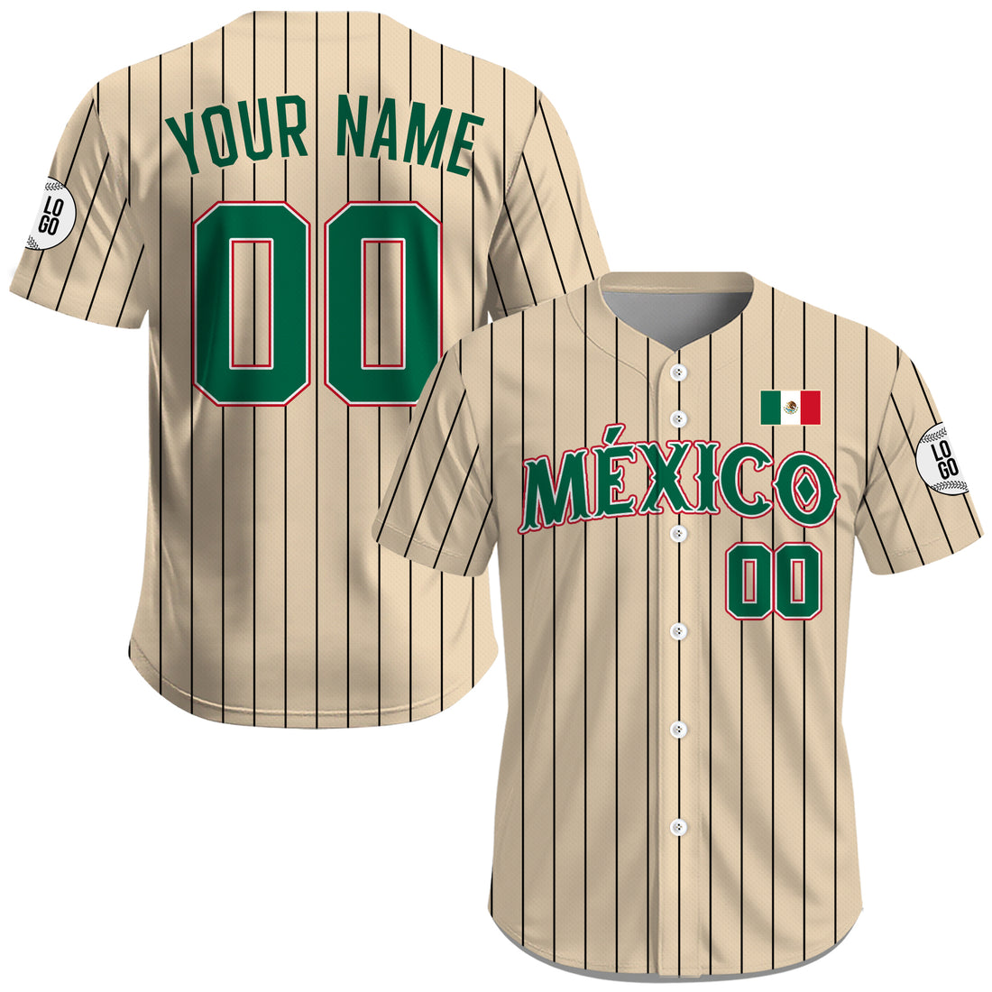 Jersey de Béisbol Personalizado de México Beige con Rayas para Hombre, Mujer y Juvenil