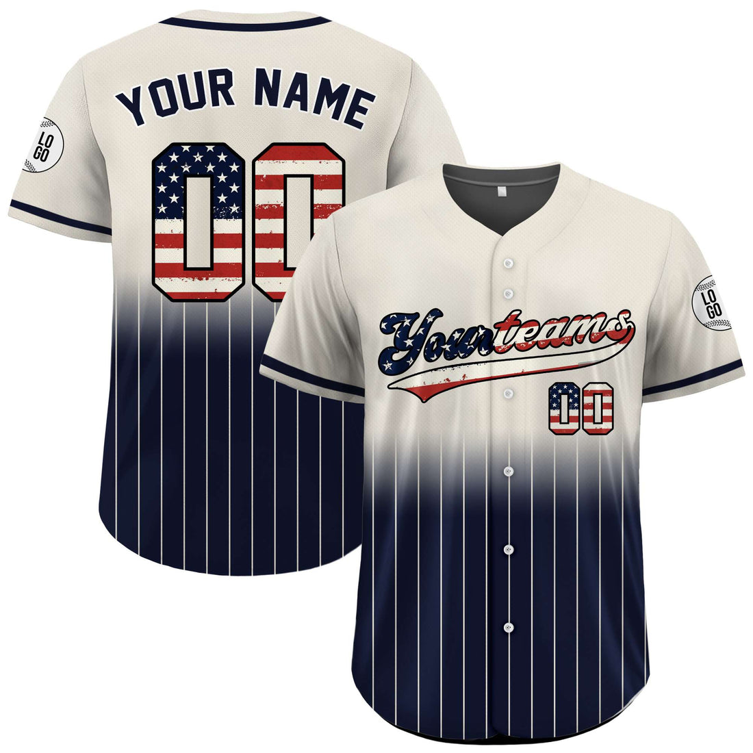 Custom Navy Patriot USA Flag July 4th Baseball Jersey