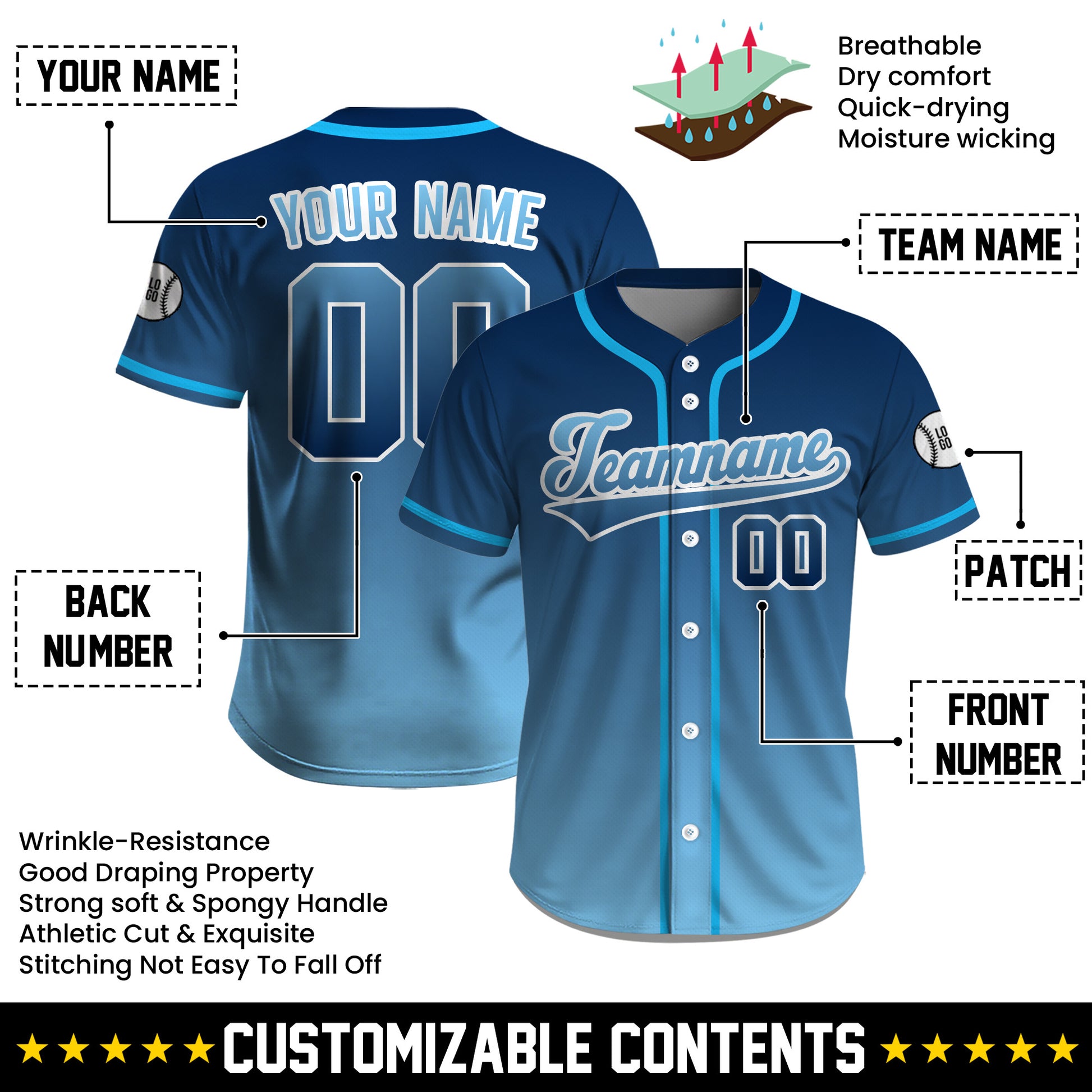 Classic Style Blue Gradient Baseball Shirt, Custom Name Number Baseball Jersey for Men Women Youth