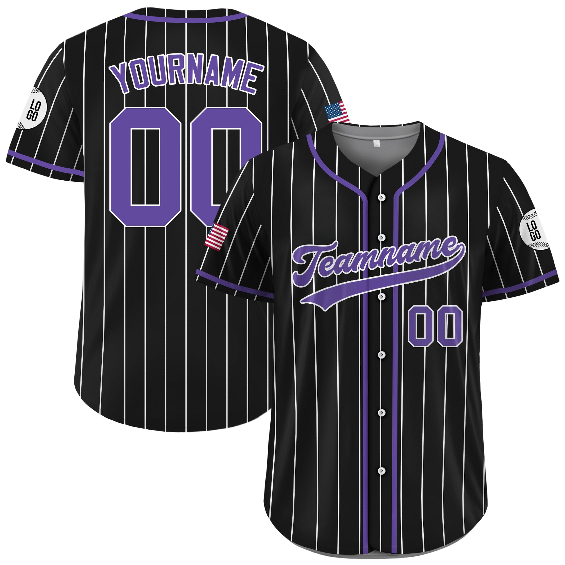 Custom Black and Purple Pinstripe Baseball Jersey, Custom Baseball Jersey for Men Women Youth Kid