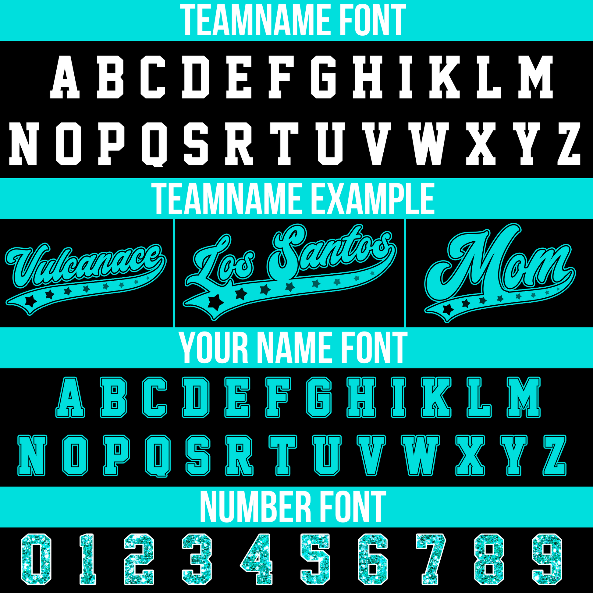 Custom Black Aqua Glitter Cheer Baseball Jersey, Custom Cheer Uniform Apparel for Youth & Adult Squads