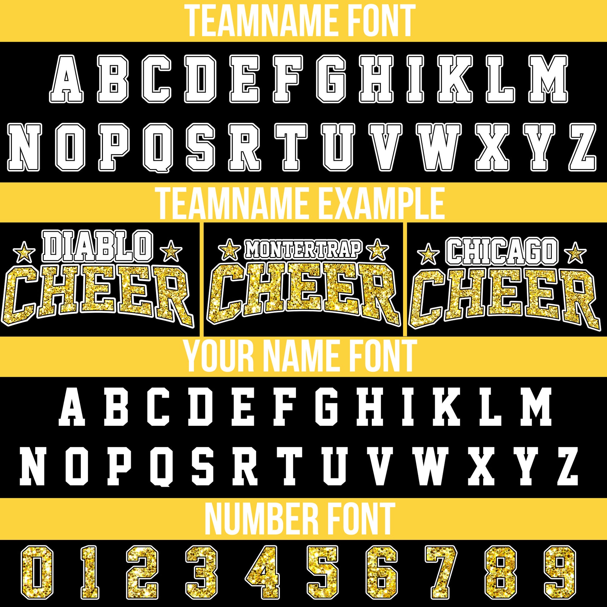 Custom Black Gold Glitter Cheer Baseball Jersey, Custom Cheerleading Uniform for Squads Individuals