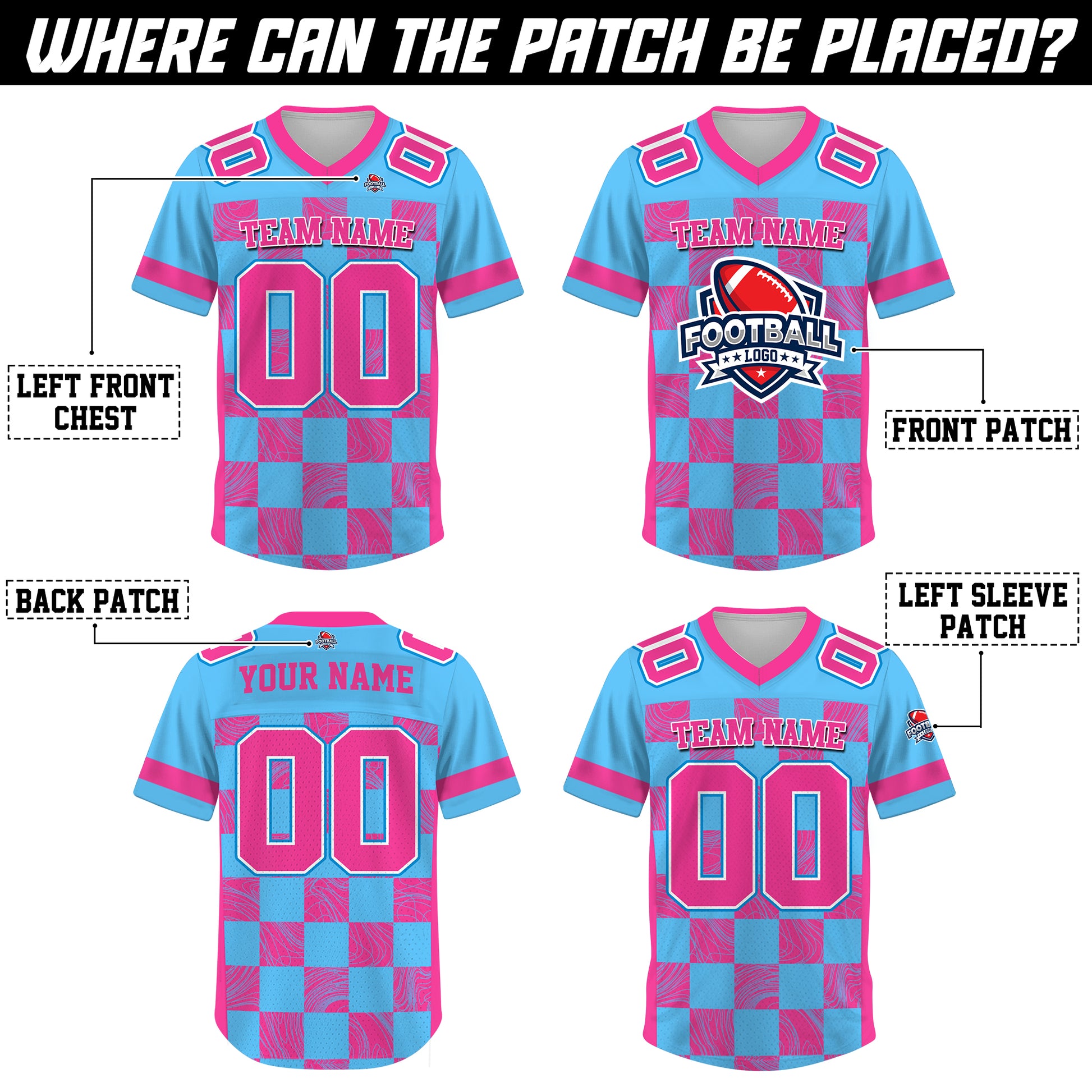 Custom Blue Pink Chess Pattern Football Jersey, Custom Football Uniform For Men & Women