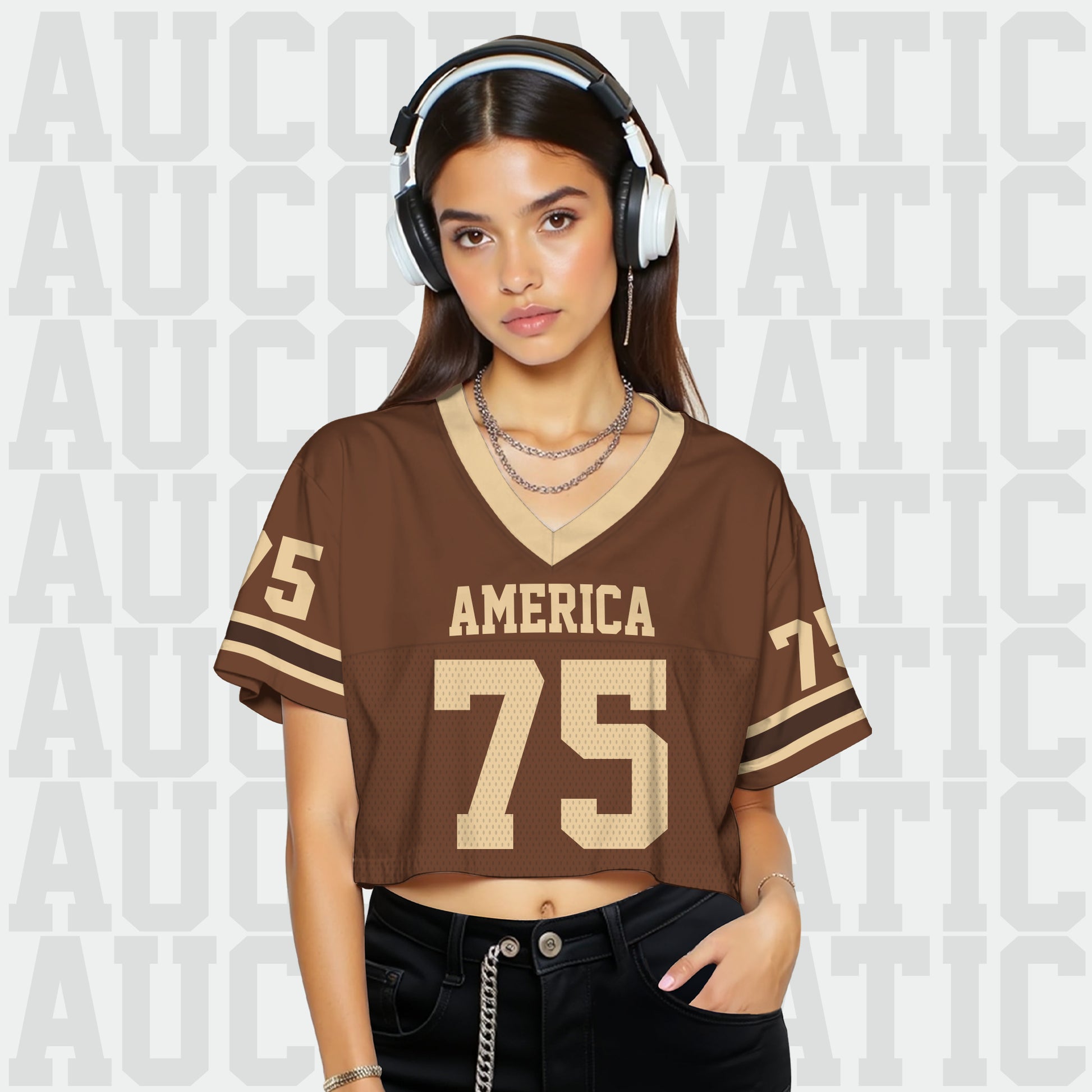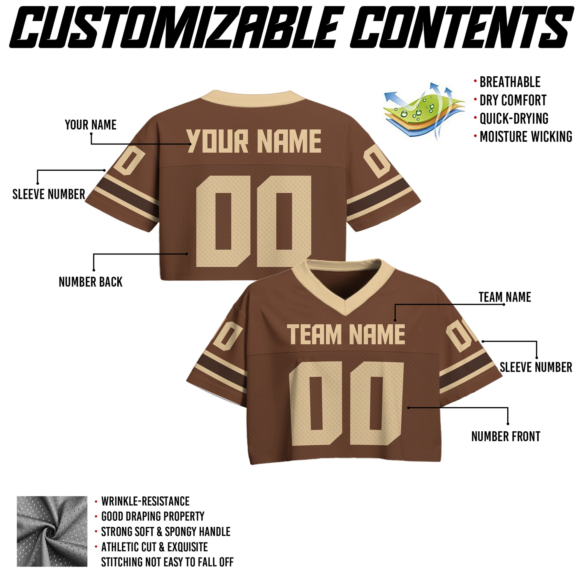 Custom Brown Tan Cropped Football Jersey, Personalized Women’s Game Day Outfit
