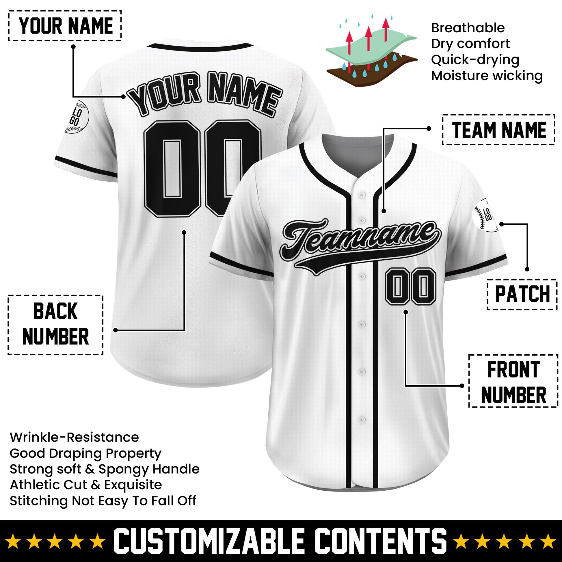 Custom Classic White Black Baseball Jersey – Timeless Style, Personal Touch