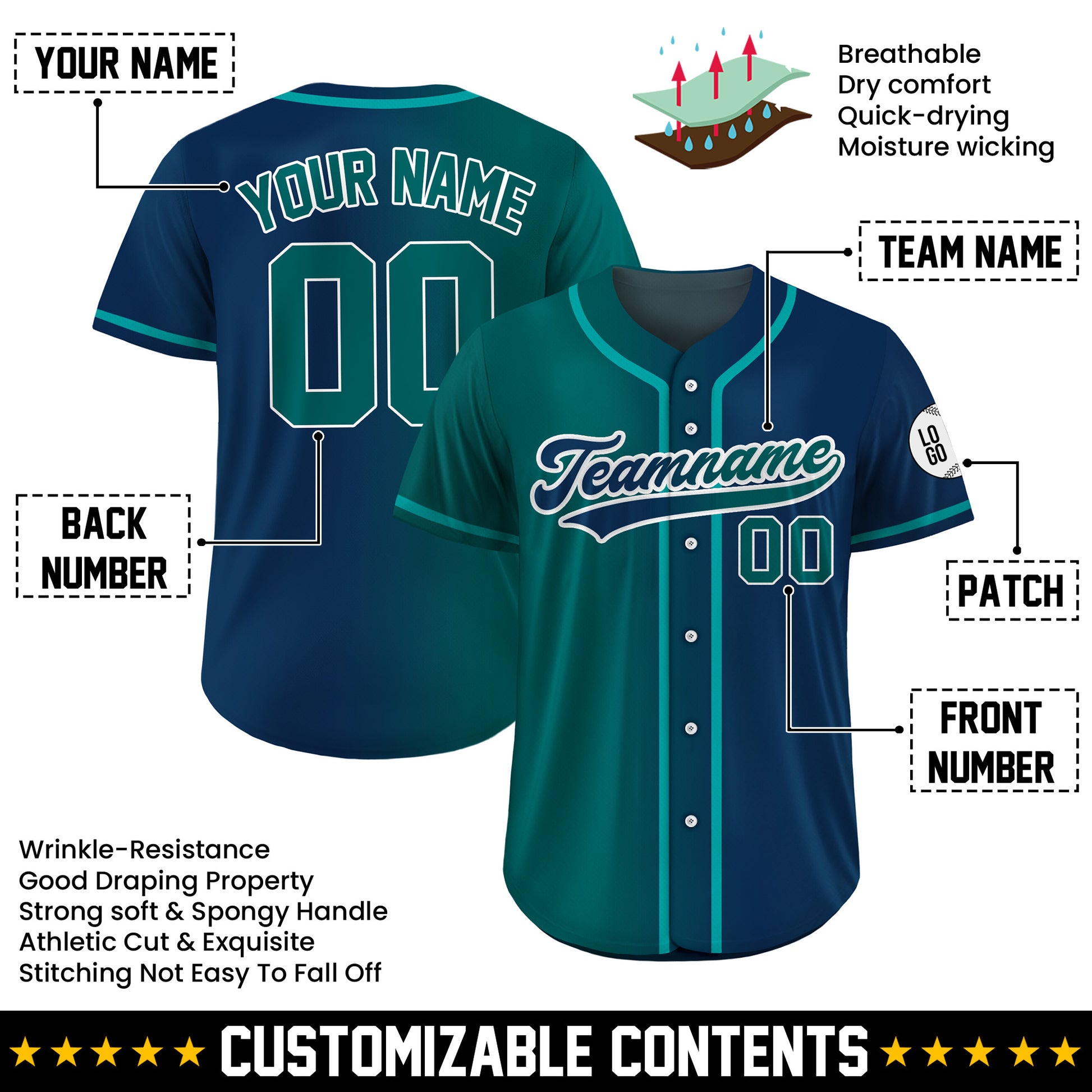 Custom Deep Sea Gradient Baseball Jersey. Design a jersey that is 100% uniquely yours!