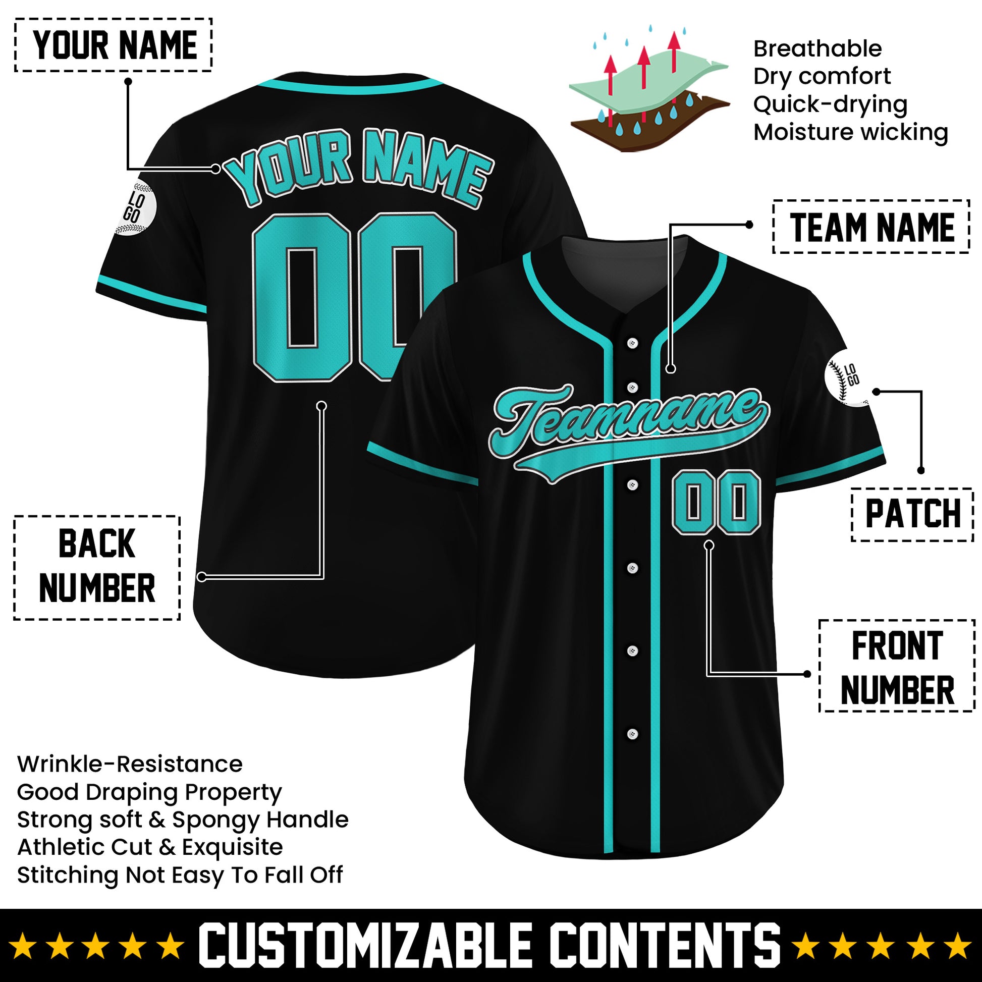 Custom Electric Teal Black Baseball Jersey – Timeless Style, Personal Touch