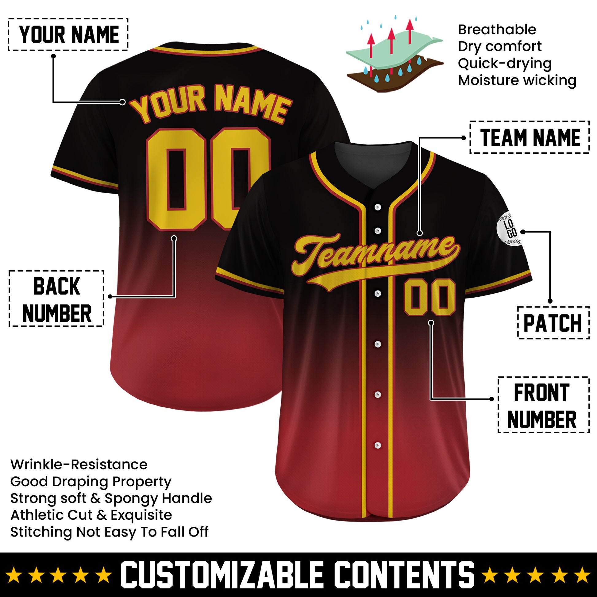 Custom Firegold Fade Gradient Baseball Jersey. Design a jersey that is 100% uniquely yours!