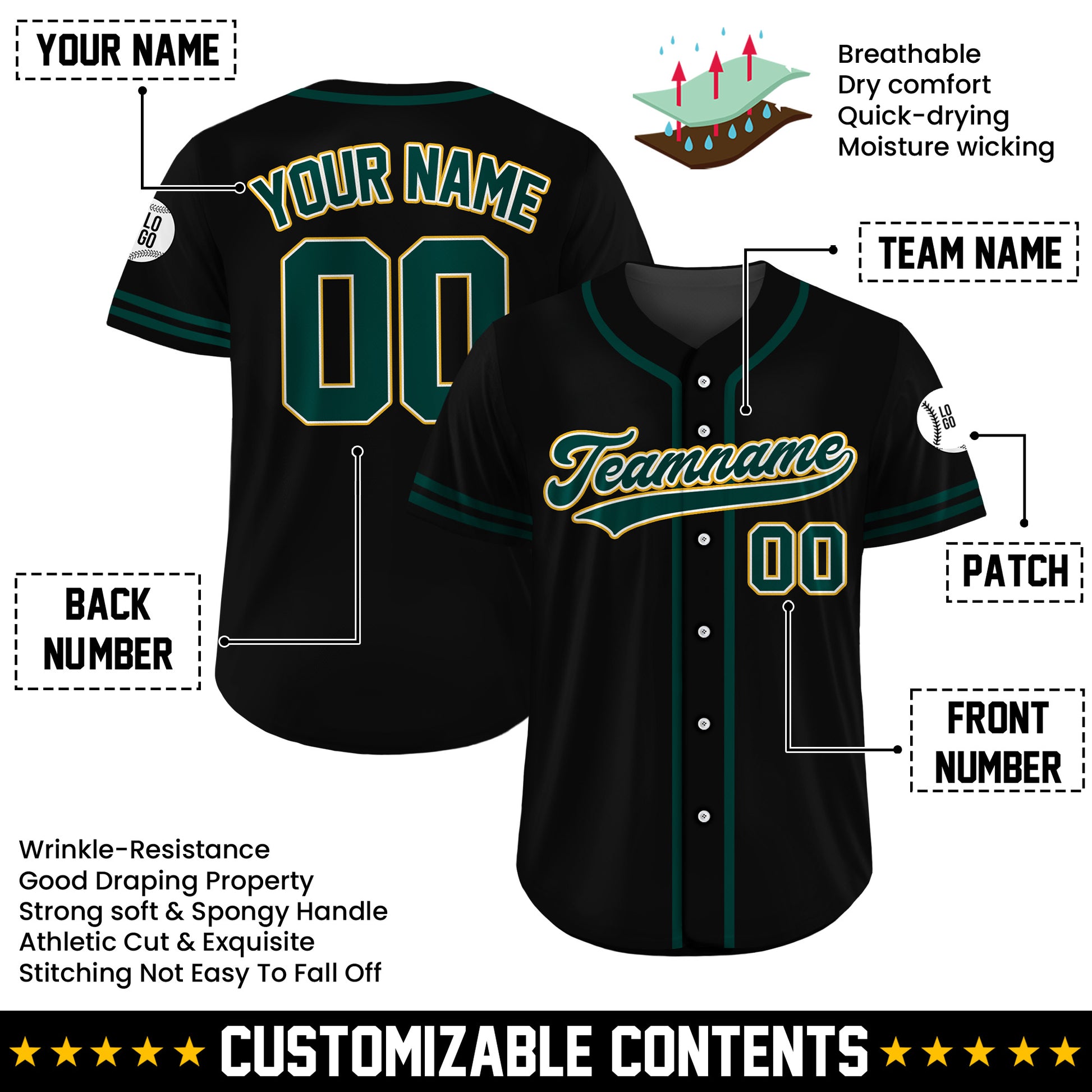 Custom Forest Gold Black Baseball Jersey – Timeless Style, Personal Touch