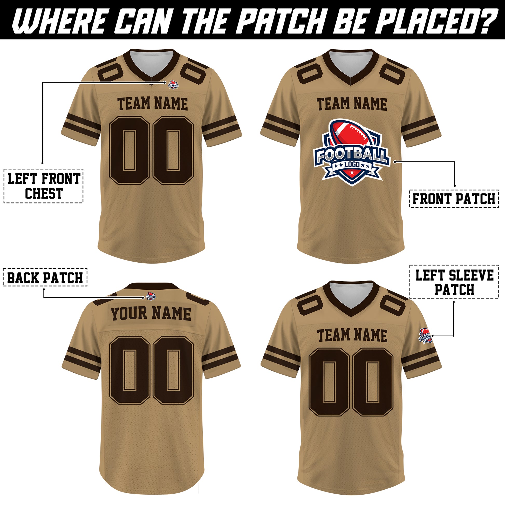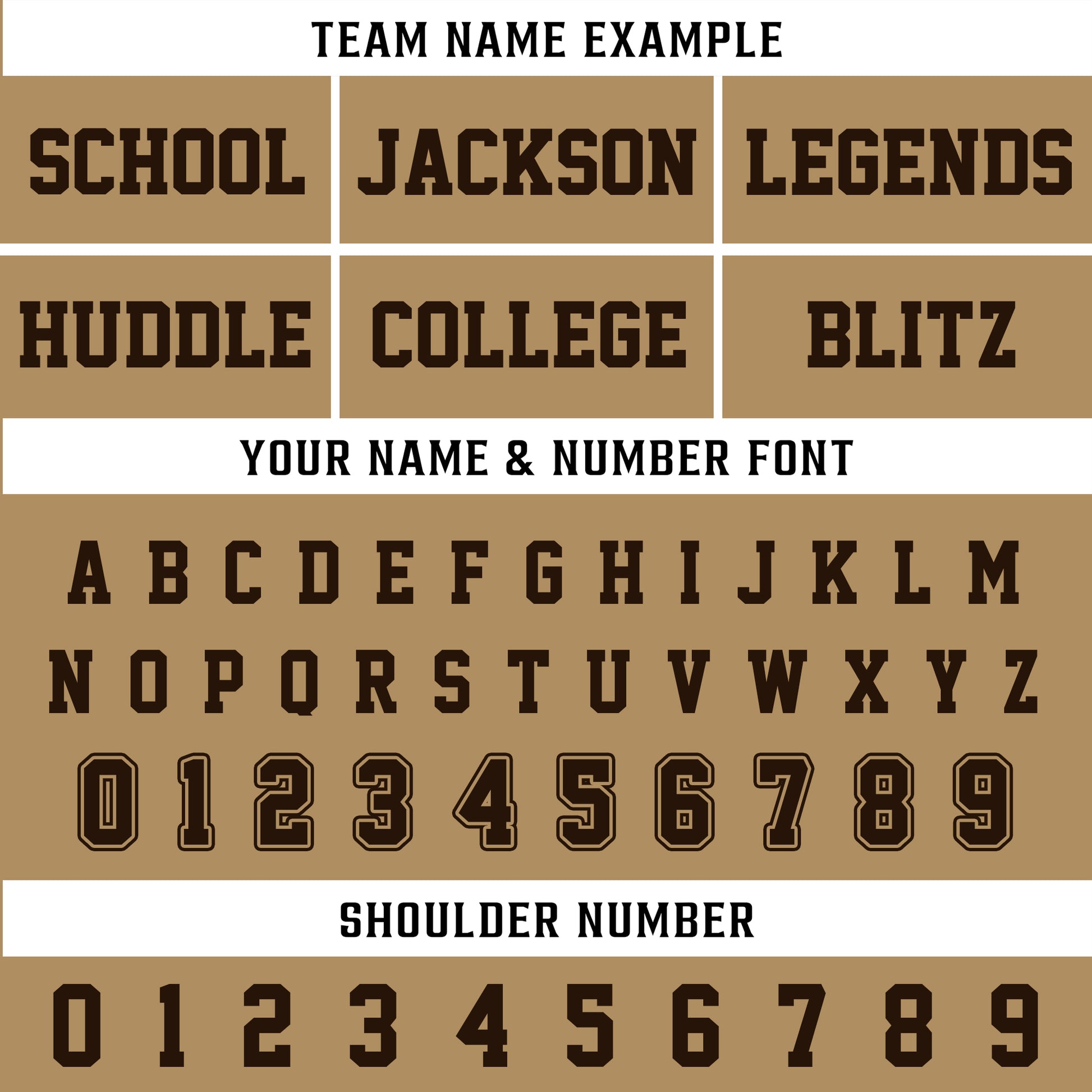 Craft a timeless look with the Custom Gold Brown Football Jersey. Express your individuality by personalizing your own jersey, confidently asserting your unique style. Whether you're proudly supporting your favorite team on game day or simply wearing it as a statement piece in your daily outfit, this jersey is designed for versatility.