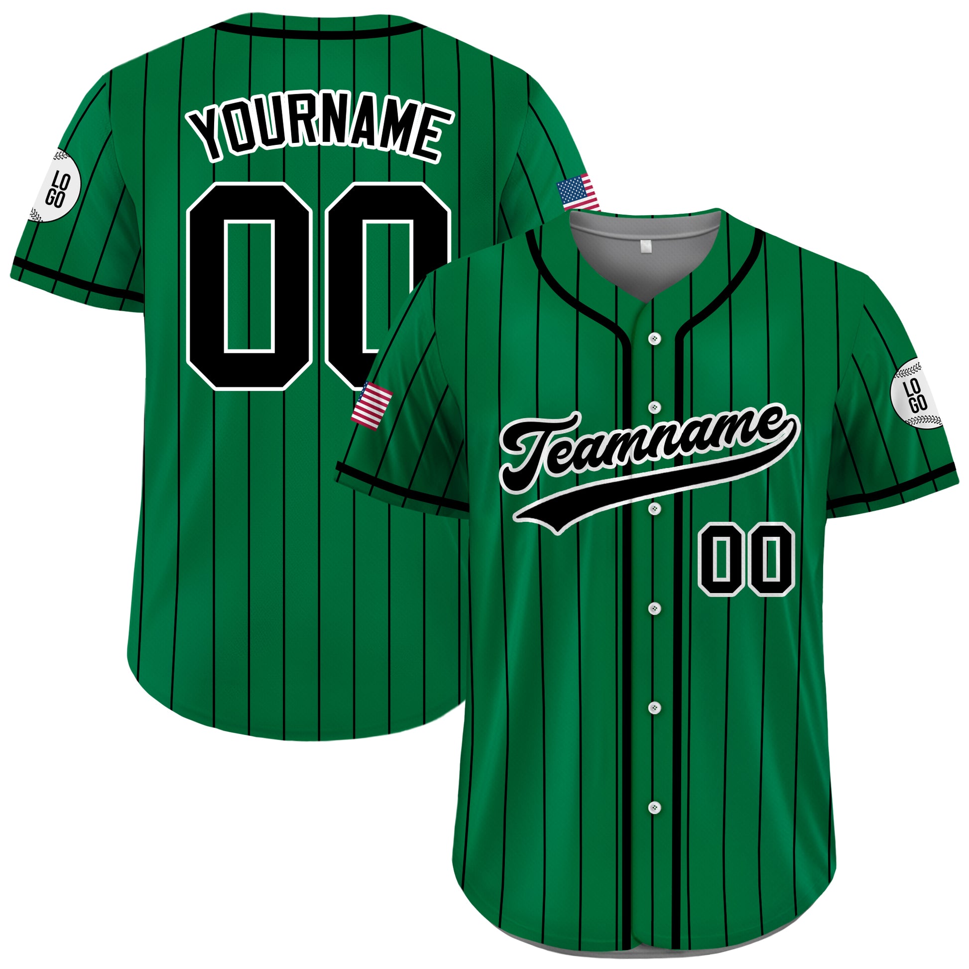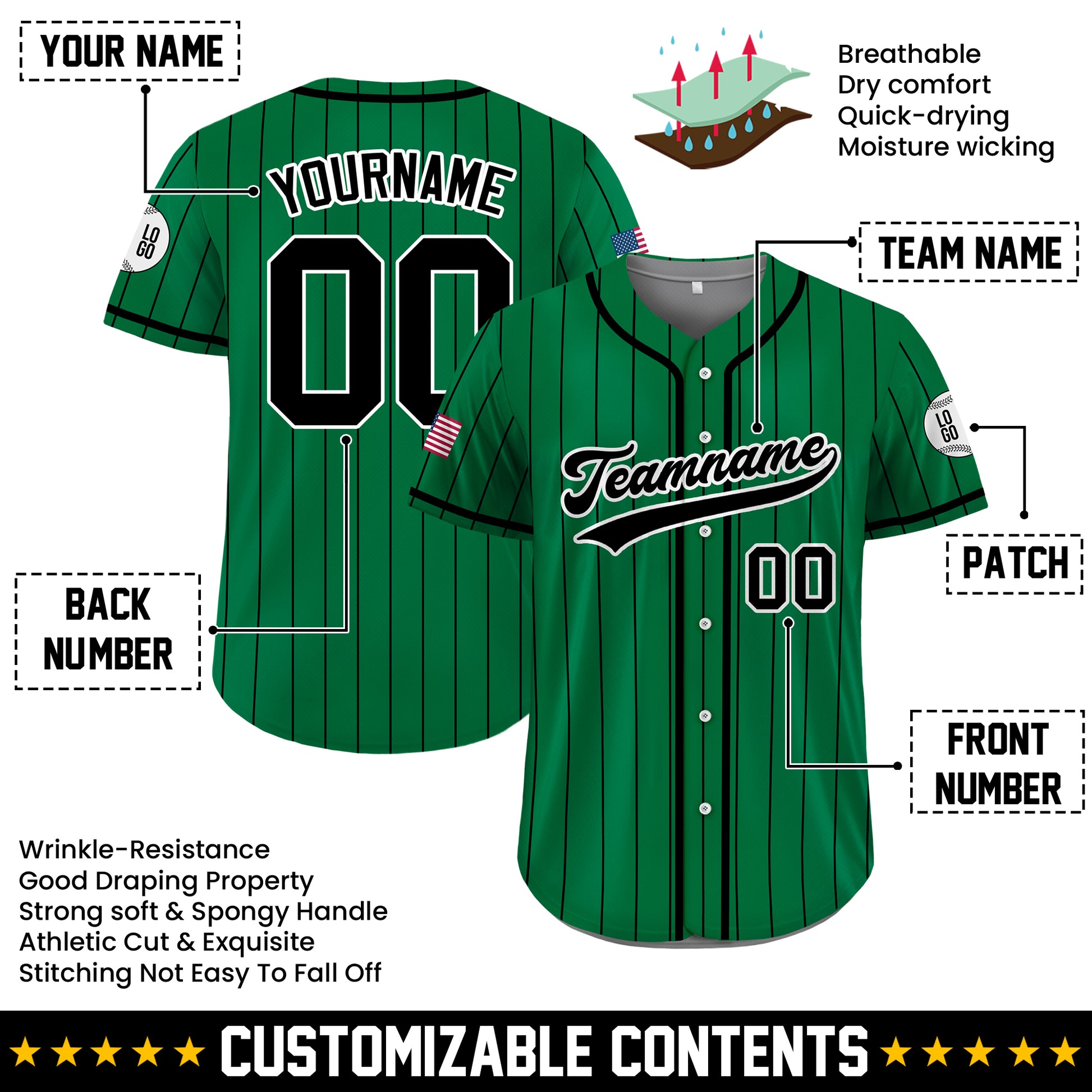 Custom Green and Black Pinstripe Baseball Jersey, Custom Baseball Jersey for Men Women Youth Kid