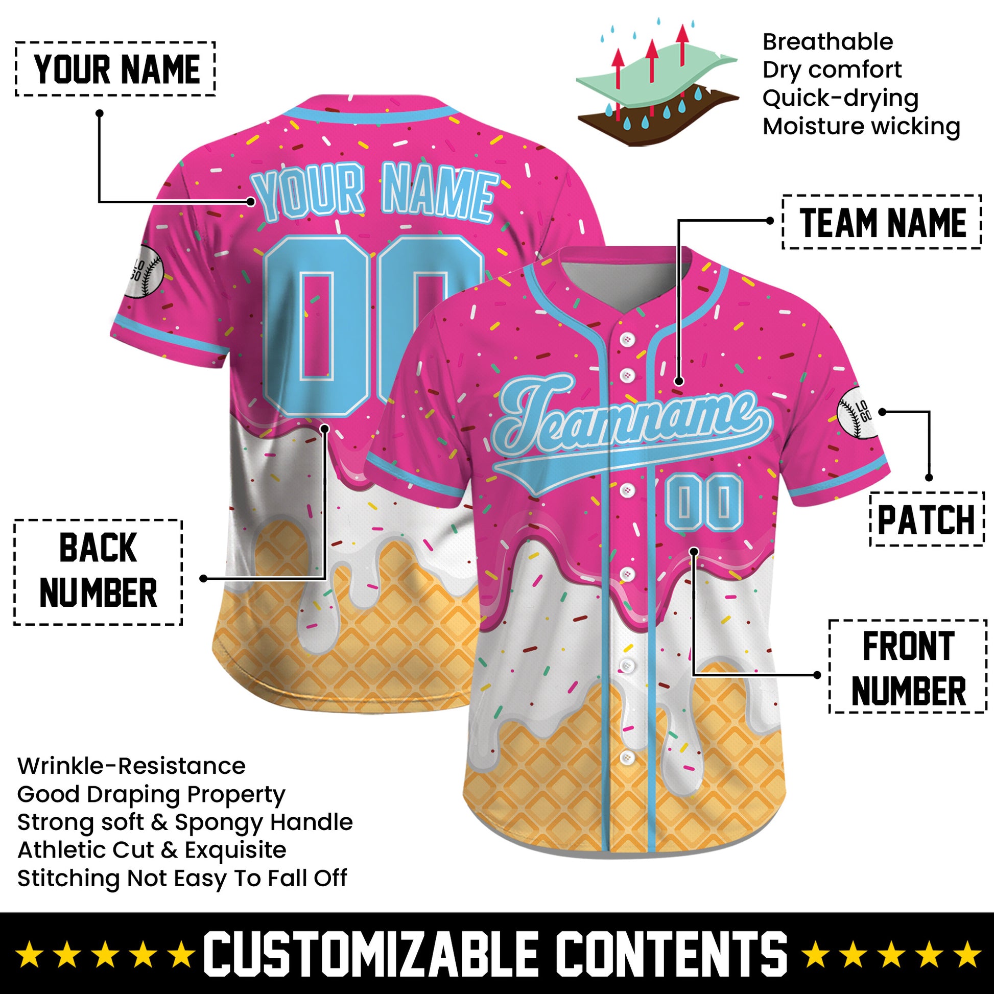 🍦 Custom Hot Pink Sky Blue Ice Cream Drip Baseball Shirt 🍦