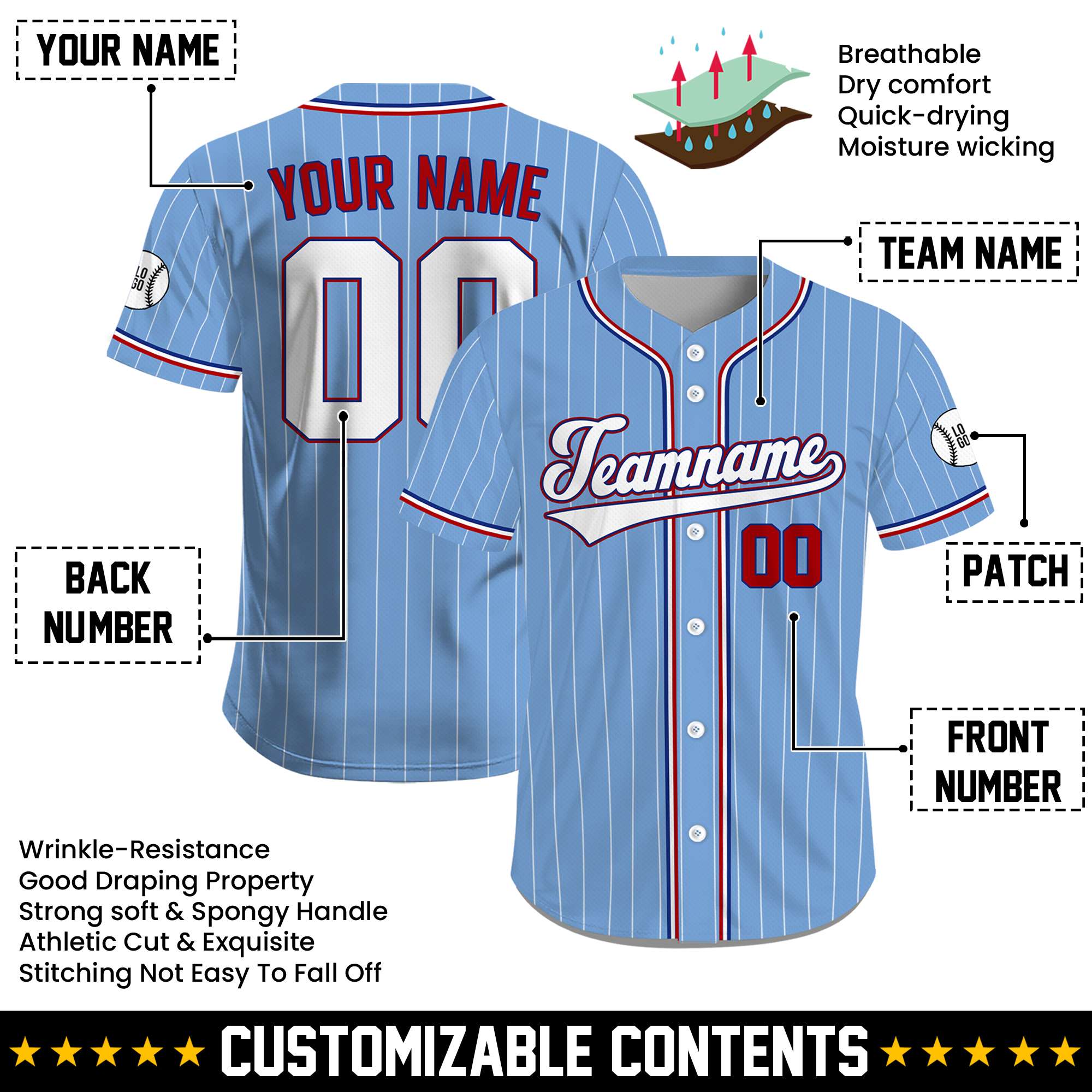 Perfect for the Fourth of July, national events, or making a personal statement any day, the design can be fully personalized to reflect your unique style. Add your name, number, or custom text to create a piece that perfectly expresses your personal viewpoint and stands for the pride in the red, white, and blue. Wear your heart on the field—or on the streets—and celebrate your American spirit!