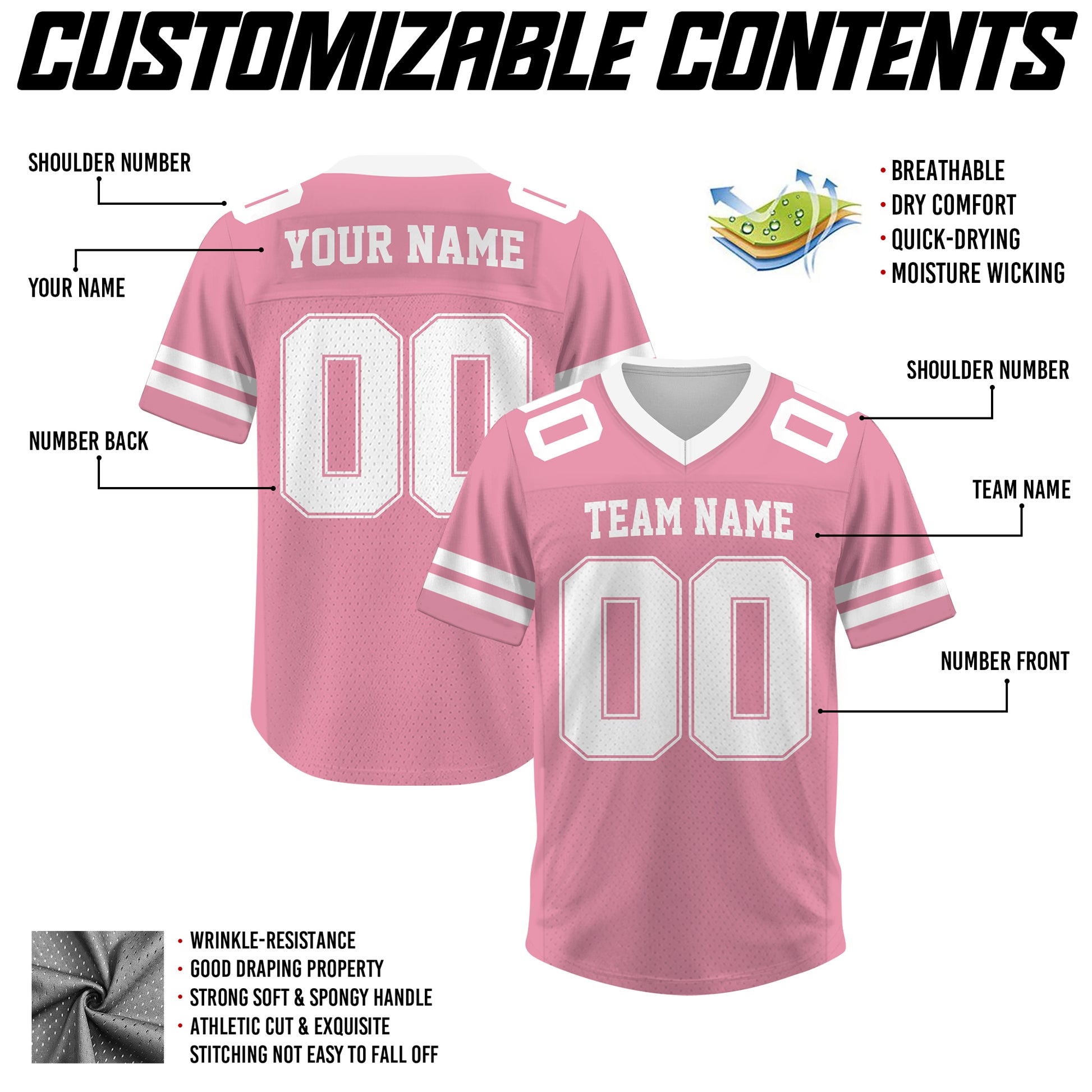 Craft a timeless look with the Custom Light Pink Football Jersey. Express your individuality by personalizing your own jersey, confidently asserting your unique style. Whether you're proudly supporting your favorite team on game day or simply wearing it as a statement piece in your daily outfit, this jersey is designed for versatility.