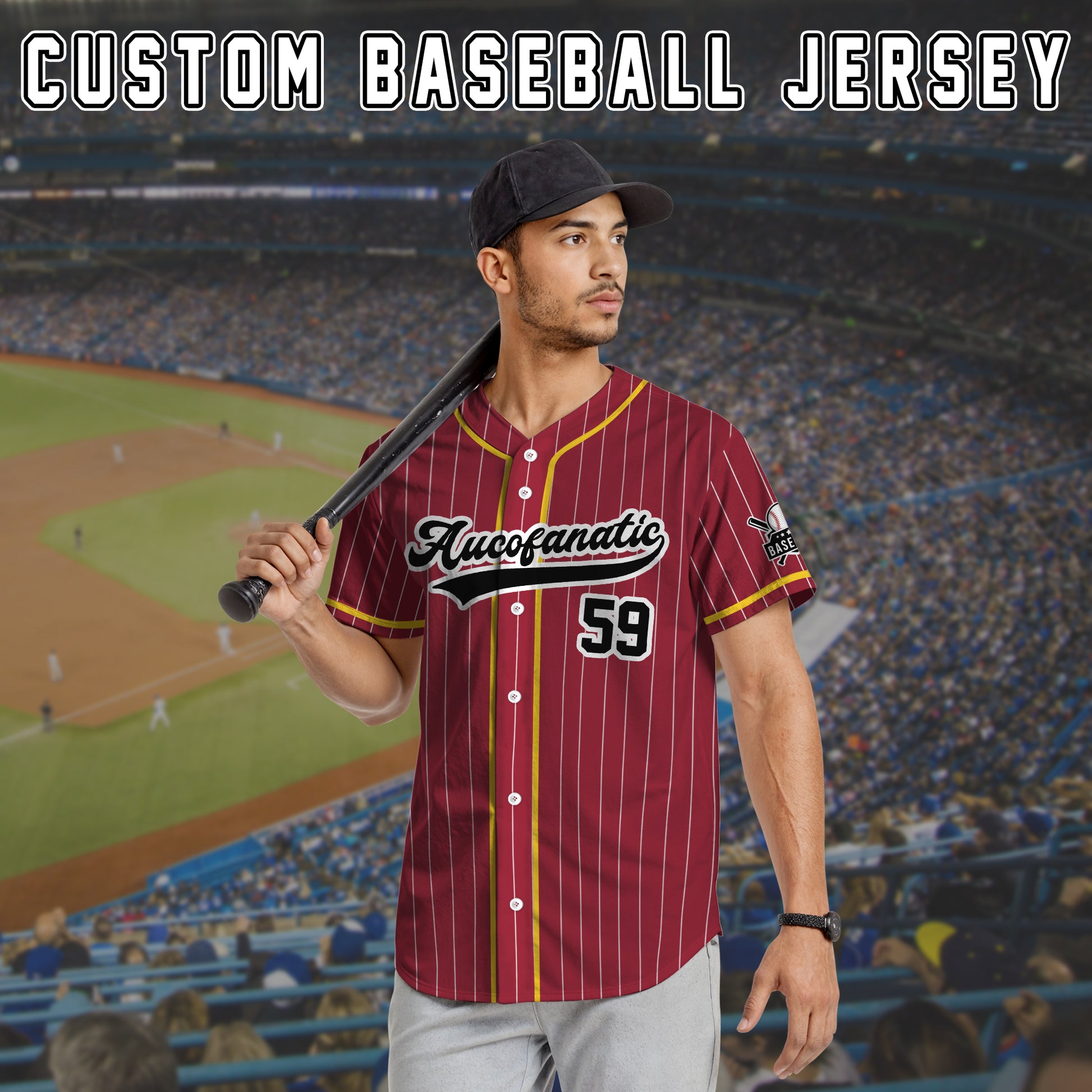 You can elevate your personal style with our Custom Maroon Pinstripe Baseball Jersey with Gold Trim. This versatile jersey is fully customizable, allowing you to add a unique name and number for a truly individual look, or even a fun logo or group name for a special event. Designed for a perfect fit, we offer a complete range of men's, women's, and youth sizes. Blending timeless style with modern comfort and durability, this jersey is ideal whether you need a spirited fan outfit for game day, a unique piece for a group event or costume, or just stylish and comfortable everyday wear. Get your custom pinstripe jersey and hit a home run with your own personal style!