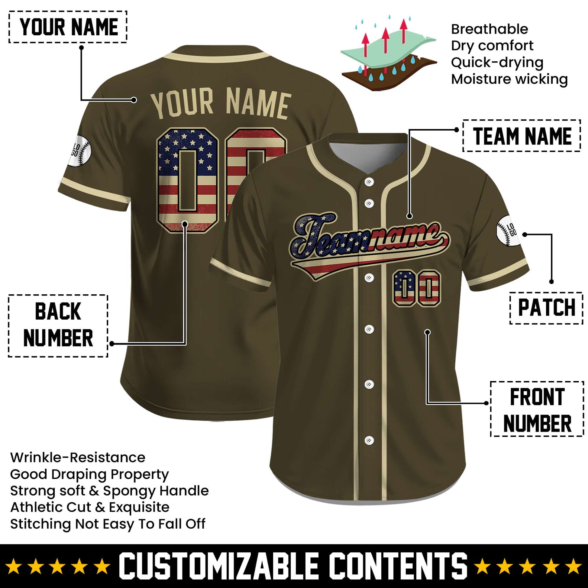 Own Your Patriotism: Custom Military Green USA Flag July 4th Baseball Jersey