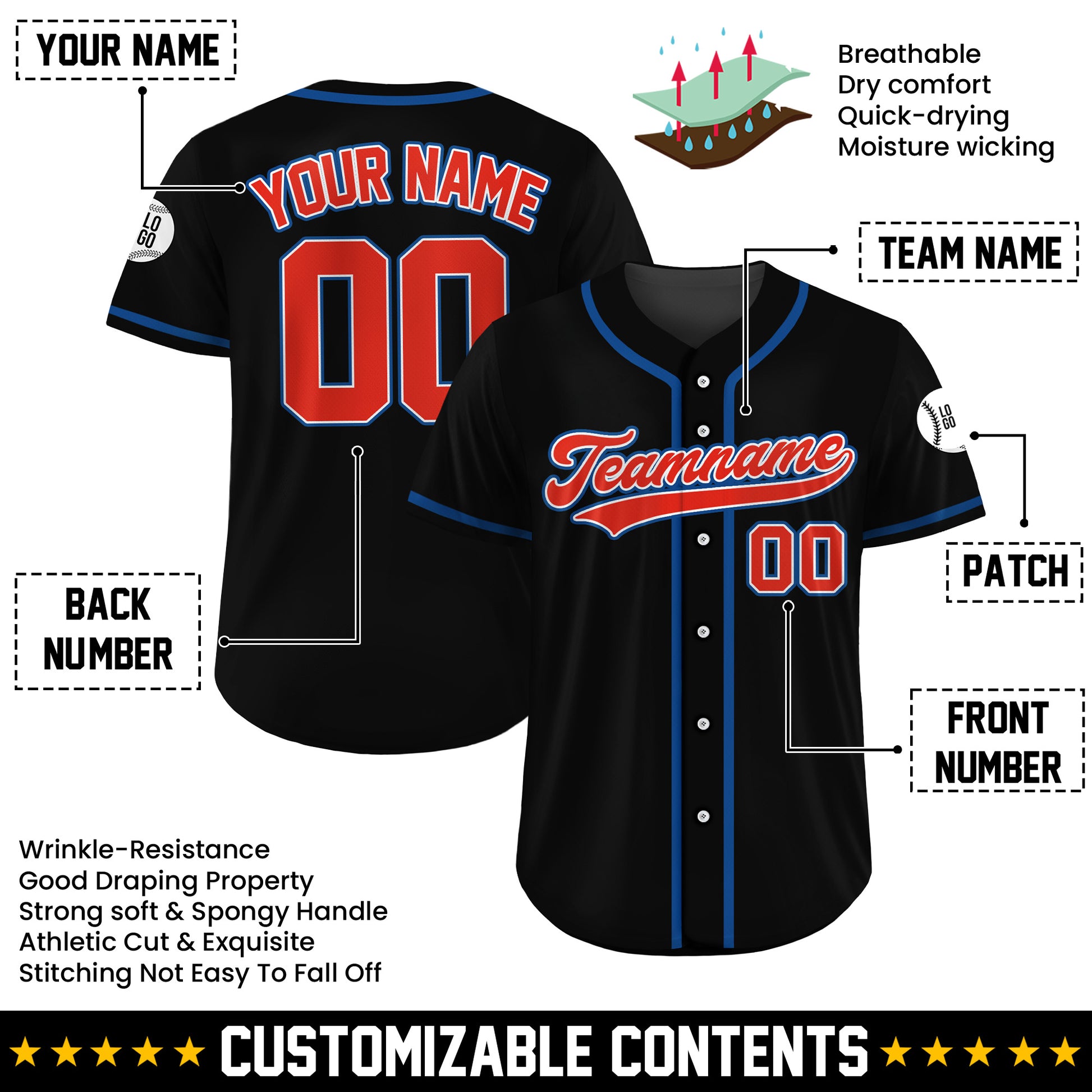 Custom Patriot Blaze Black Baseball Jersey – Timeless Style, Personal Touch