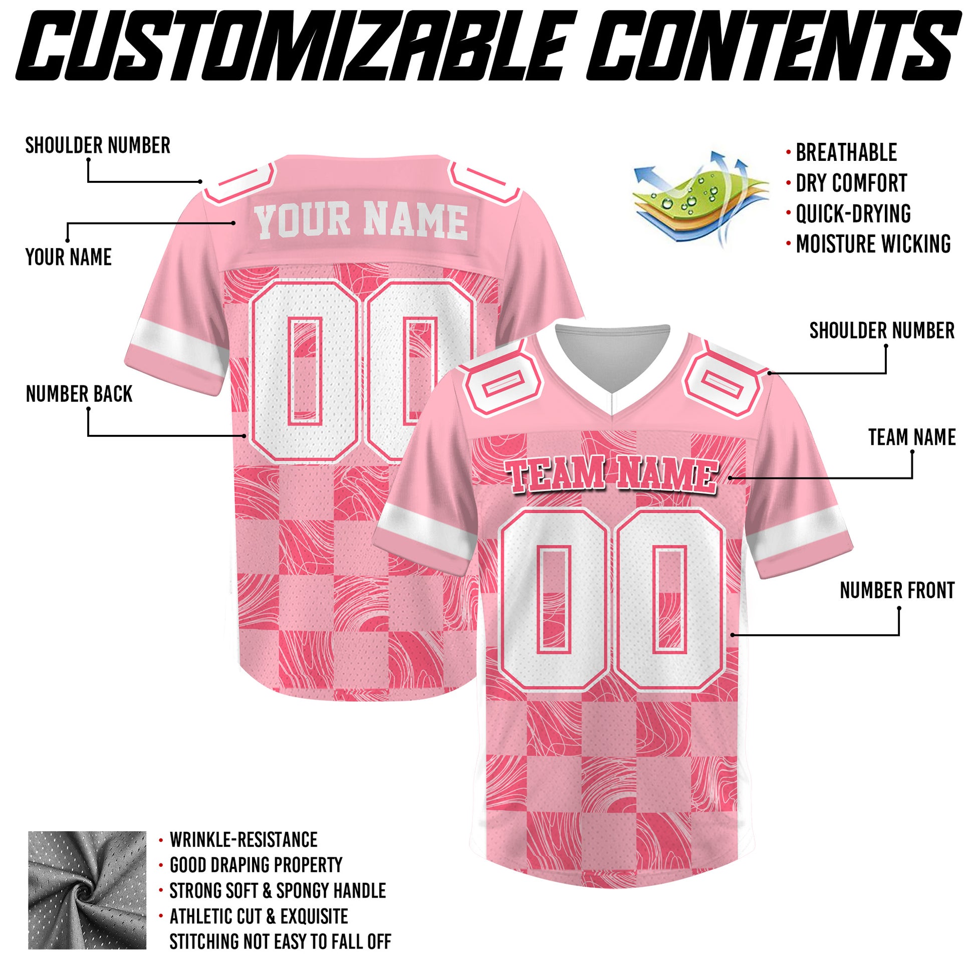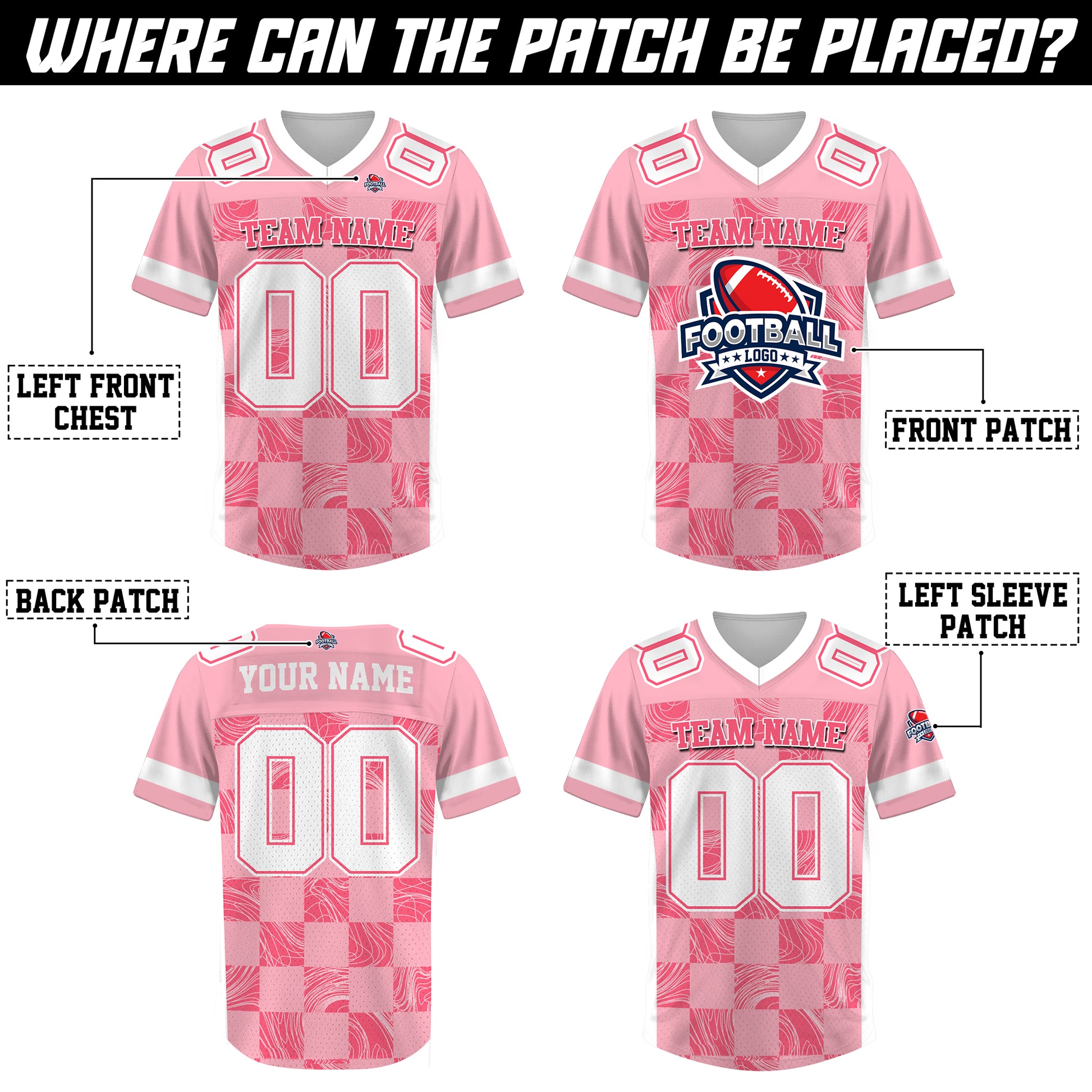 Custom Pink White Chess Pattern Football Jersey, Custom Football Jerseys Cheap for Fan