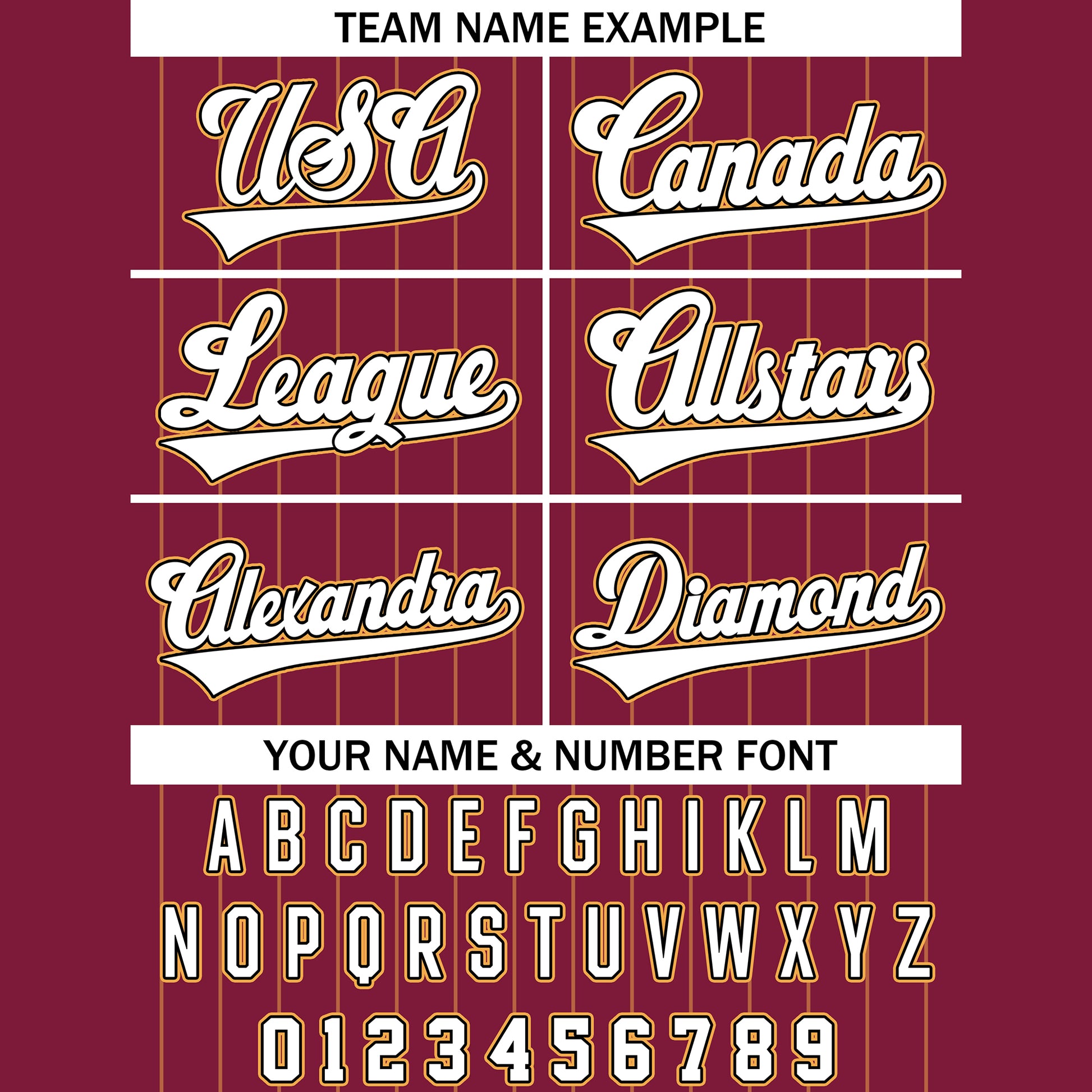 Custom Pinstripe Baseball Jersey, Maroon and Yellow Classic Baseball Shirt with Personalized Name and Number