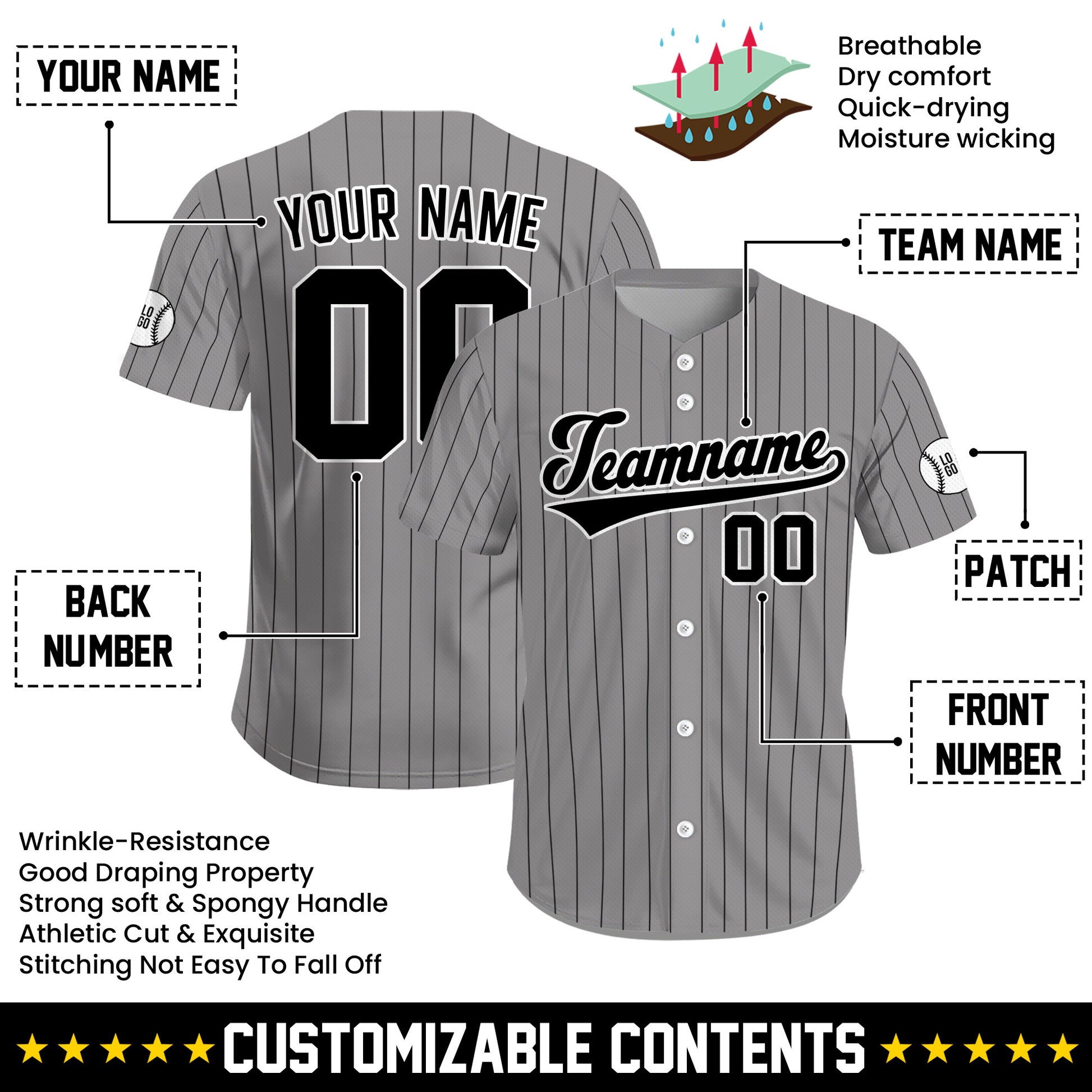 Custom Pinstripe Gray Black Team Baseball Jersey – Timeless Style, Personal Touch
