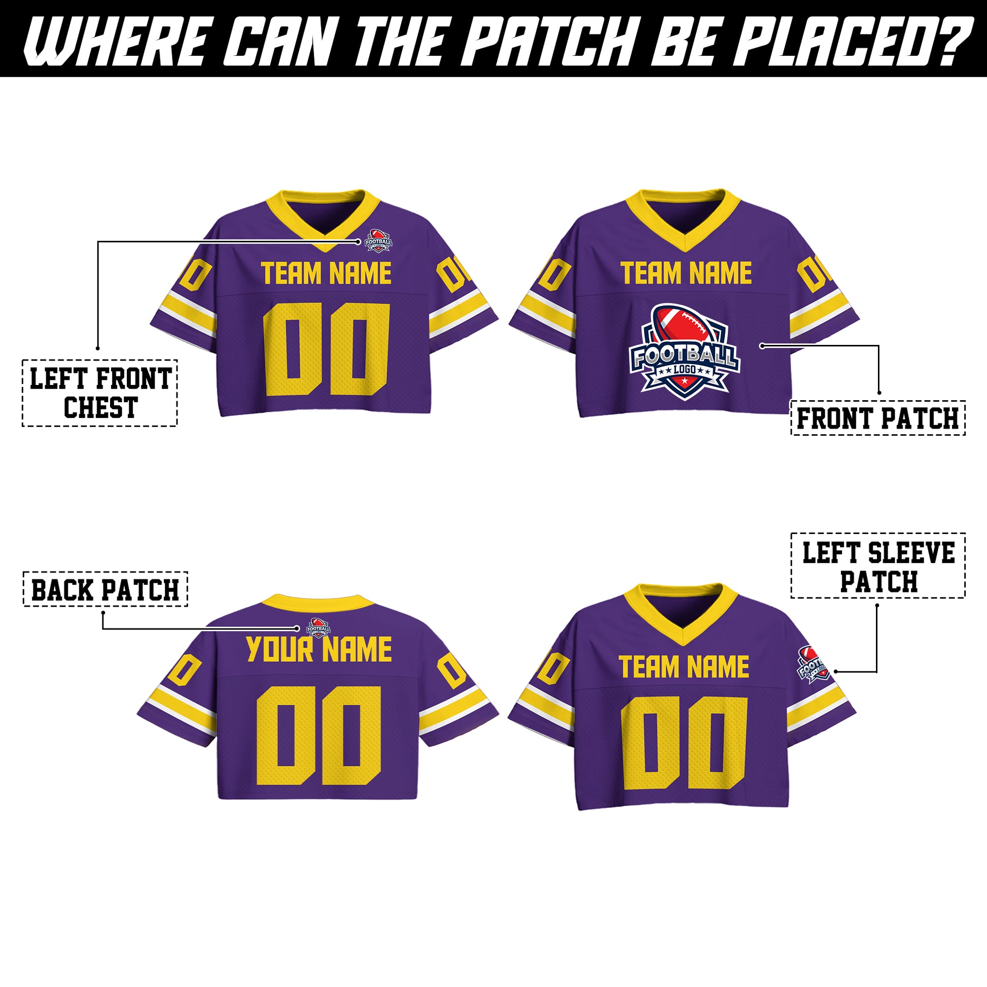 Custom Purple Gold Cropped Football Jersey, Personalized Game Day Outfit for Women Girl