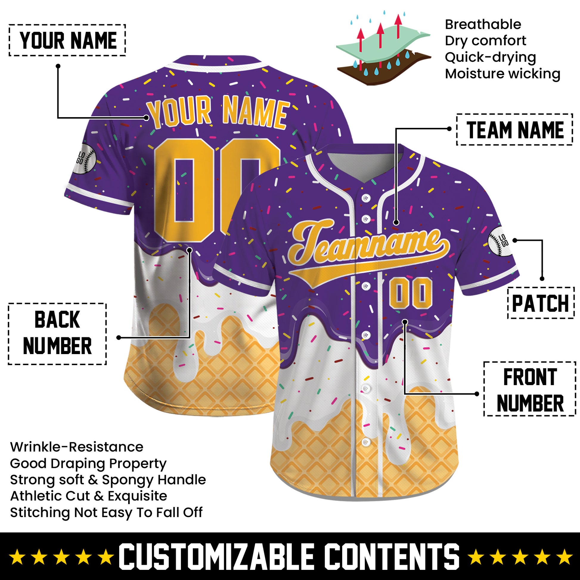 🍦 Custom Purple Yellow Ice Cream Drip Baseball Jersey 🍦