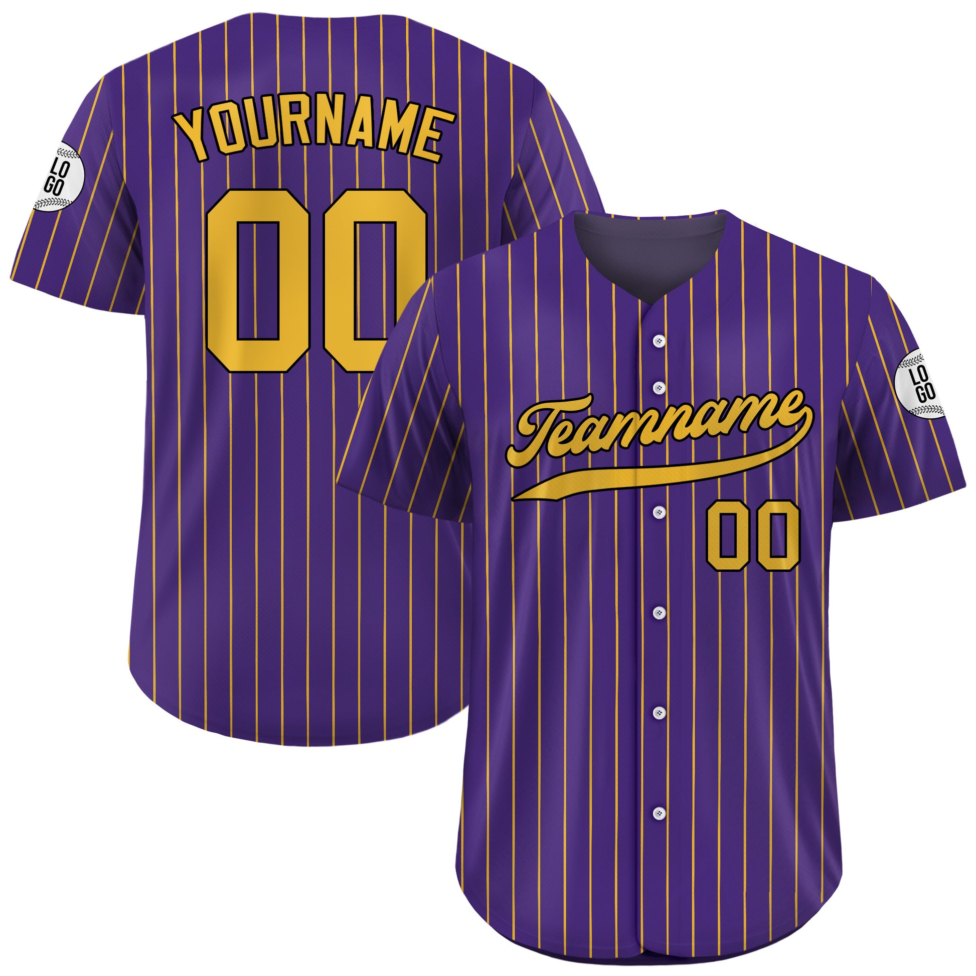 Elevate your team's style with a classic Custom Purple Yellow Striped Baseball Jersey. This jersey is fully customizable, allowing you to add unique team names, logos, and player numbers for a truly professional look. Find the perfect fit for every team member, with a complete range of sizes available for men, women, and youth.