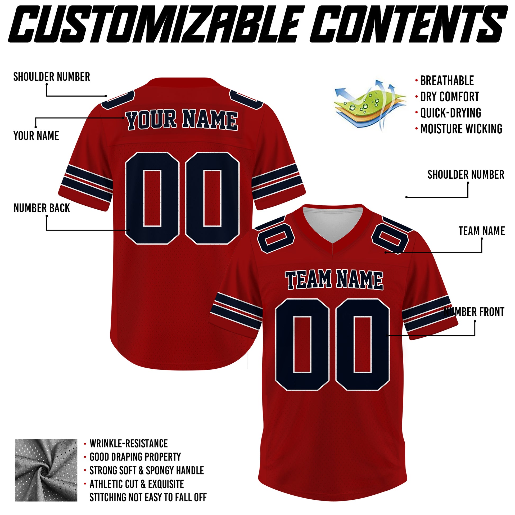 Versatility: Perfect for football games, team uniforms, training sessions, or casual wear.