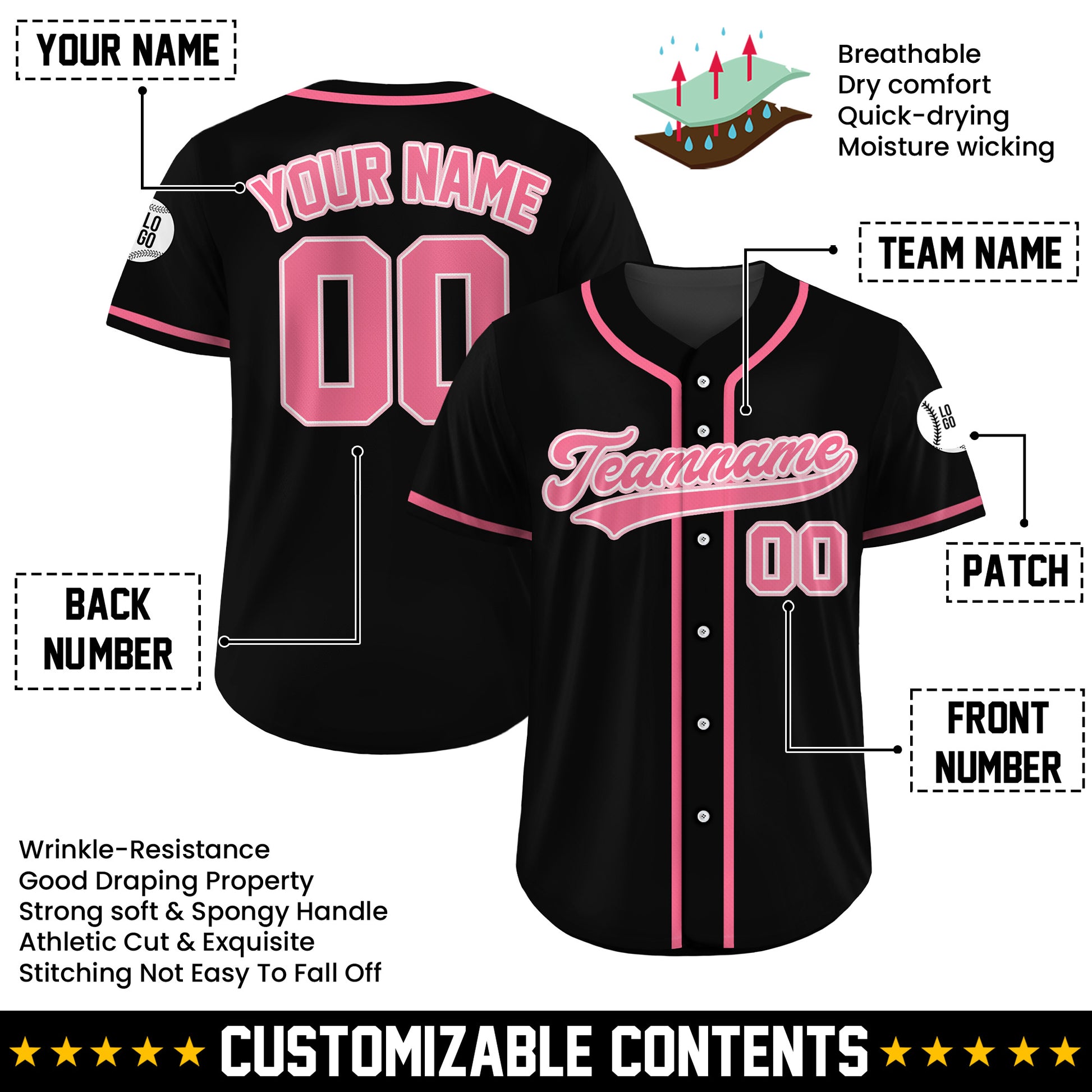 Custom Rose Noir Black Baseball Jersey – Timeless Style, Personal Touch