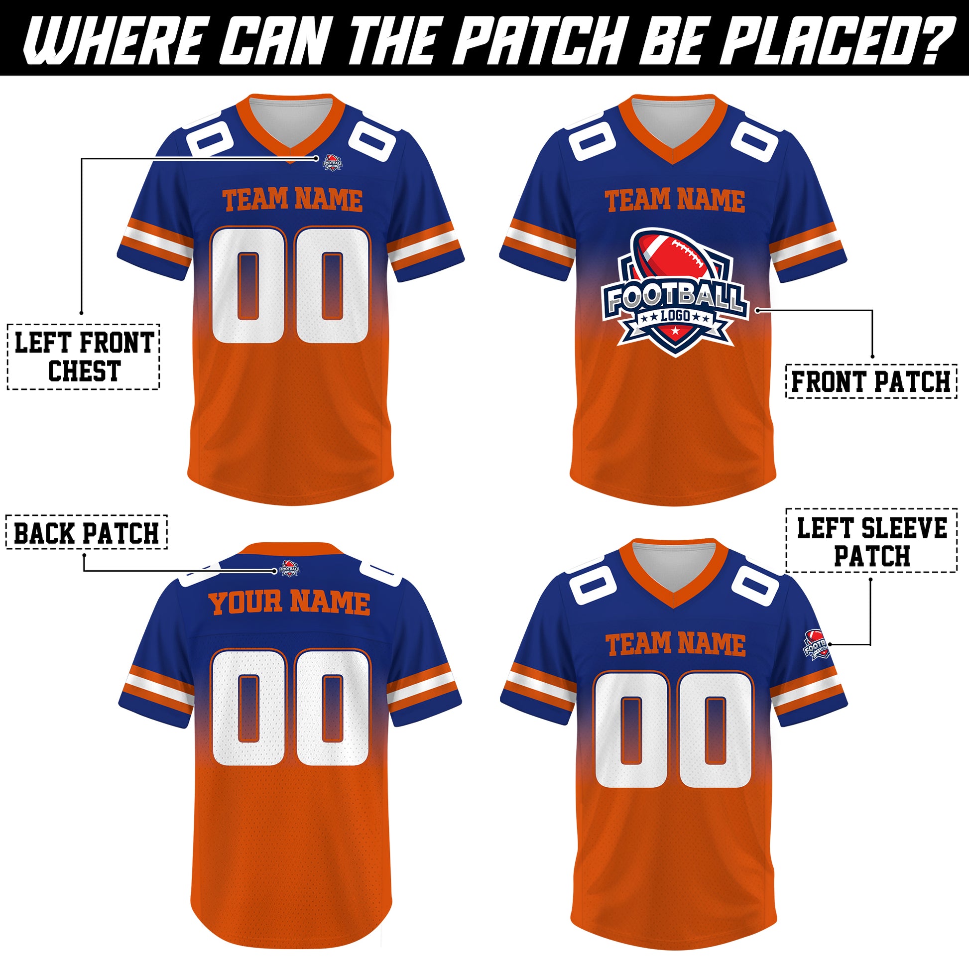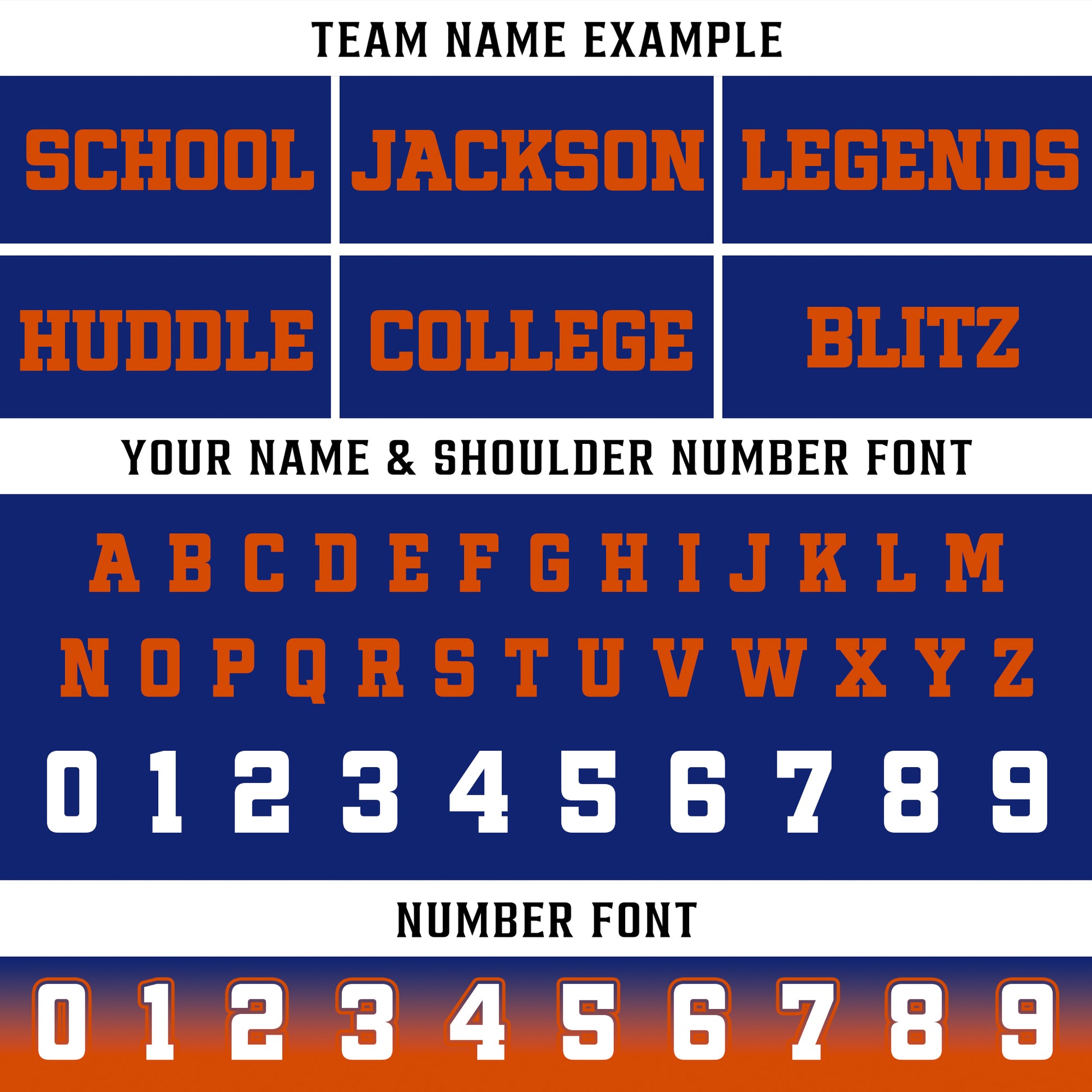 Custom Royal Blue Orange Gradient Football Jersey, Personalized Team Name Number Football Jersey for Men Women Youth