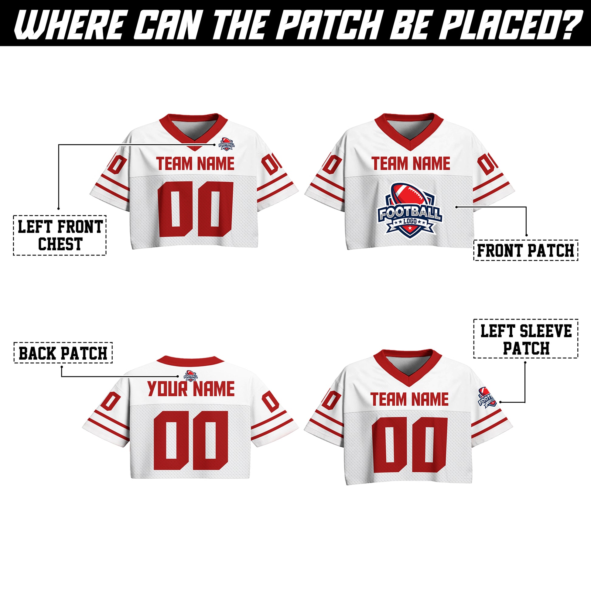 Custom White and Red Cropped Football Jersey, Personalized Women’s Game Day Top