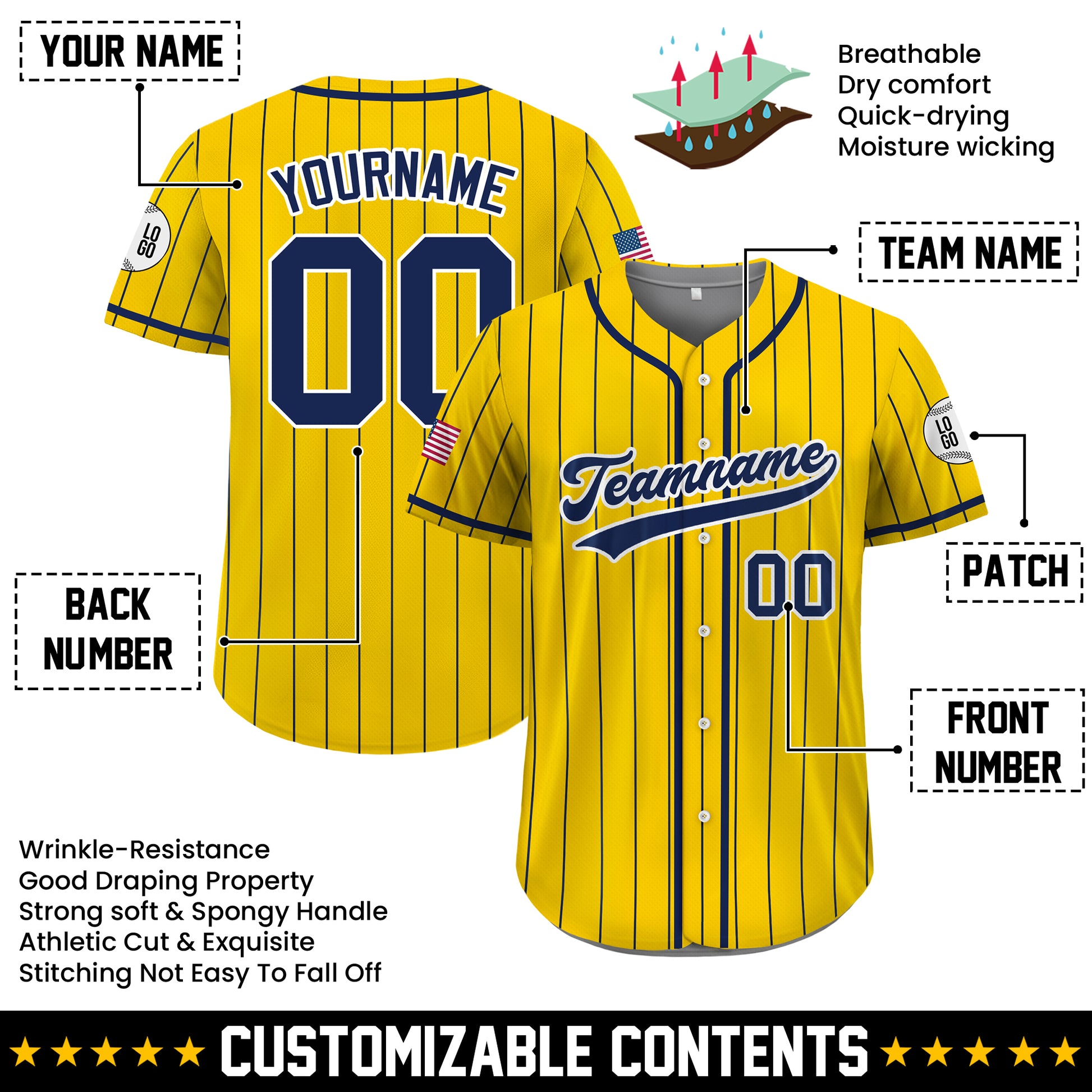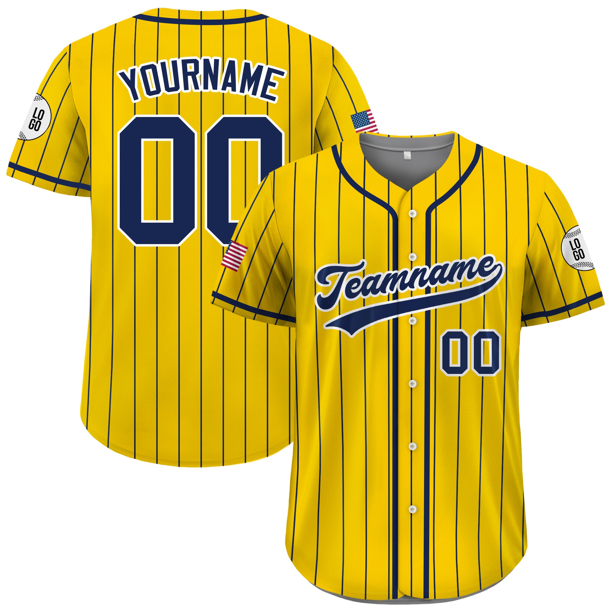 Custom Yellow and Navy Pinstripe Baseball Jersey, Personalized Team Uniforms for Men, Women & Youth Fans