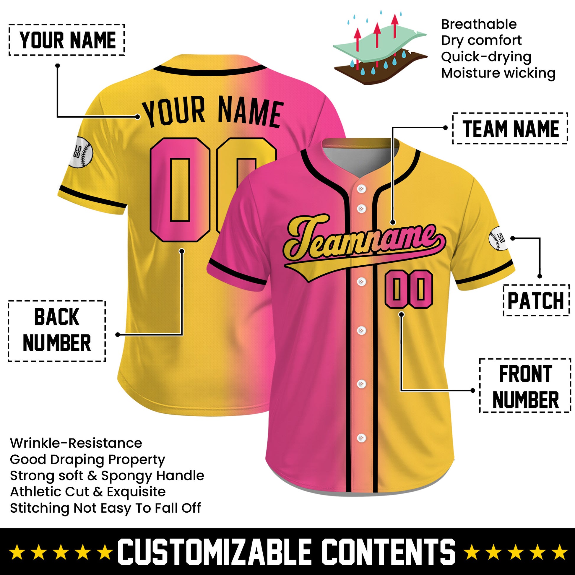 Custom Yellow Pink Fade Sports Baseball Uniform – Timeless Style, Personal Touch