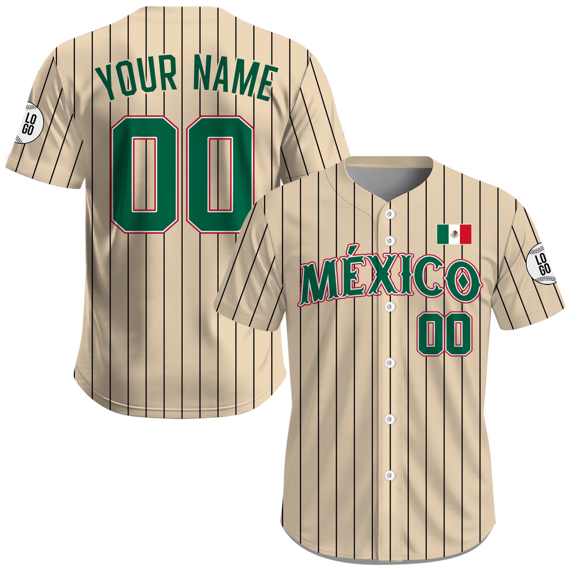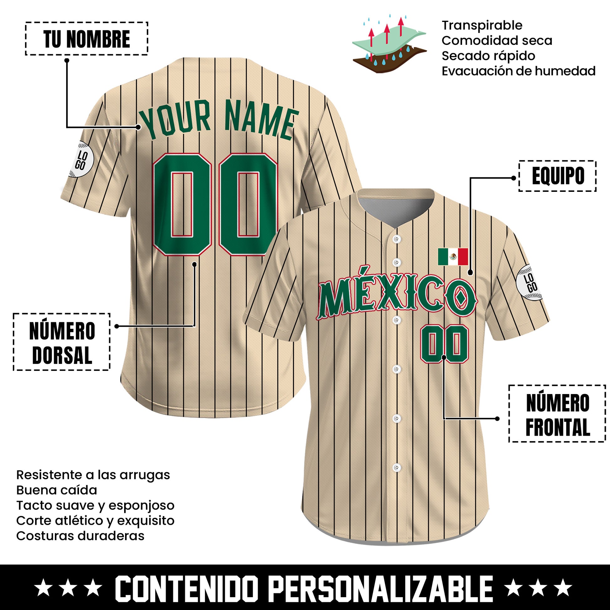 Jersey de Béisbol Personalizado de México Beige con Rayas para Hombre, Mujer y Juvenil