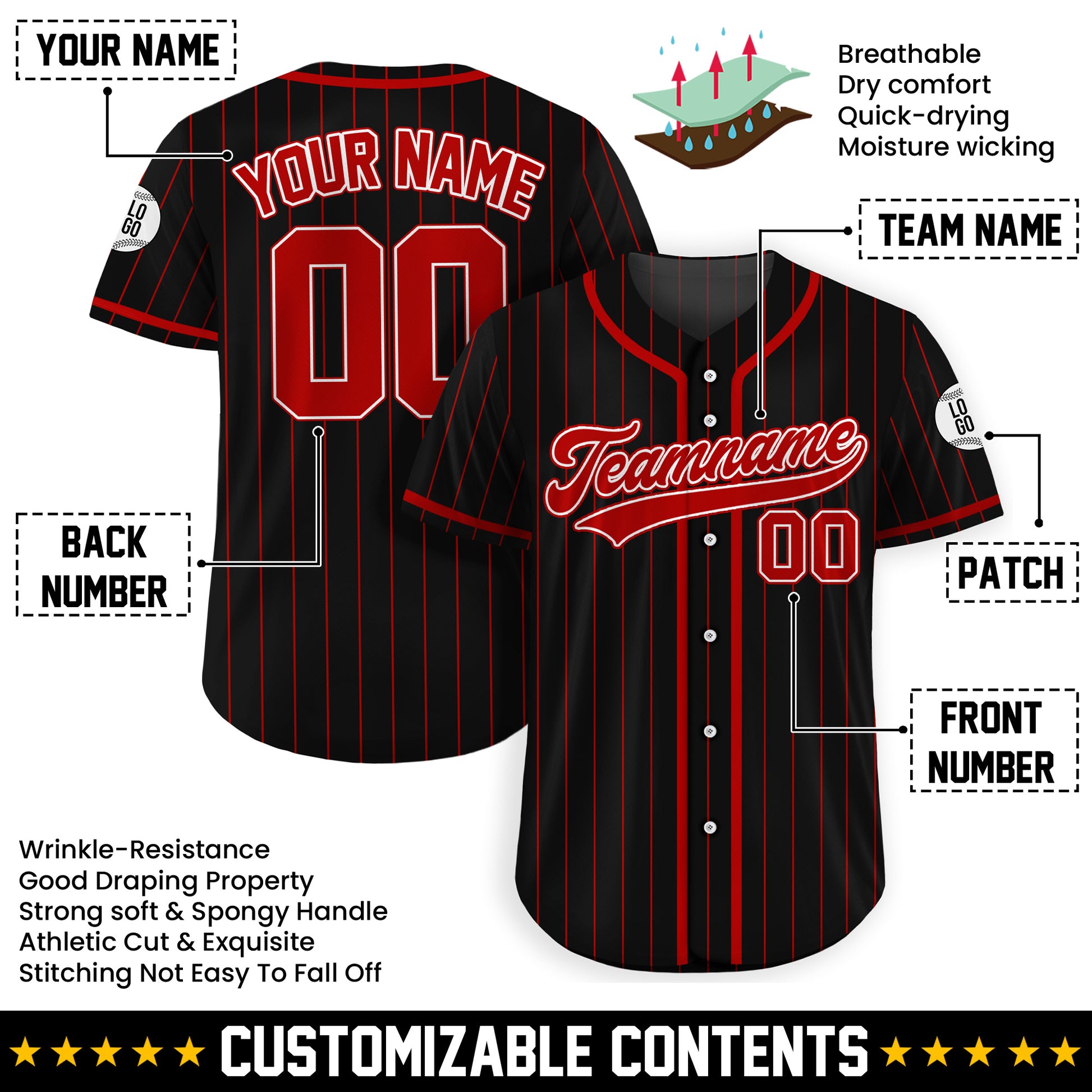Step onto the field in your own Black Red Pinstriped Baseball Uniform, a timeless classic made uniquely for you. This isn't just a shirt—it's your personal statement, blending the authentic feel of game day with a versatile style you can wear anytime.