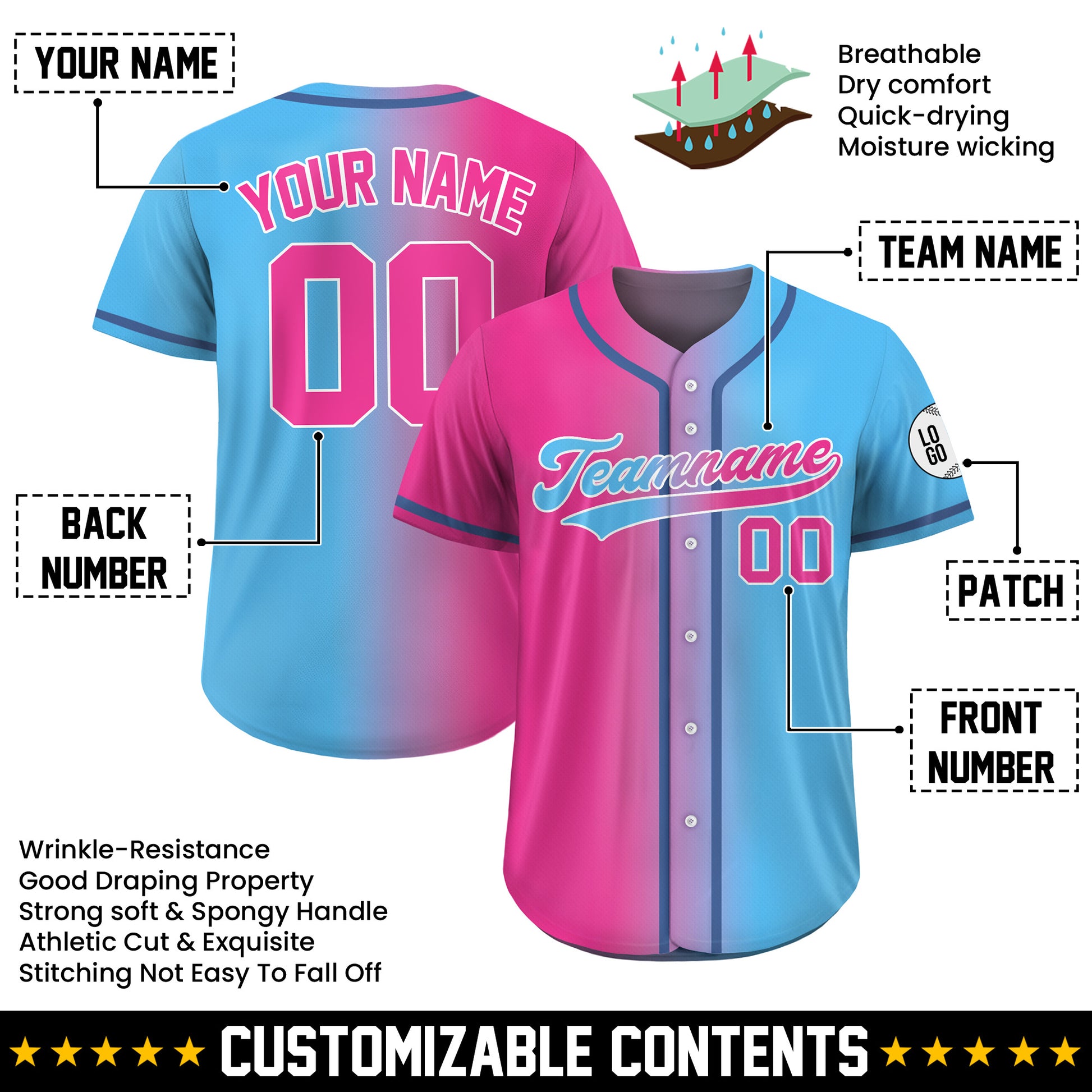 Personalized Cotton Candy Gradient Baseball Jersey. Design a jersey that is 100% uniquely yours!