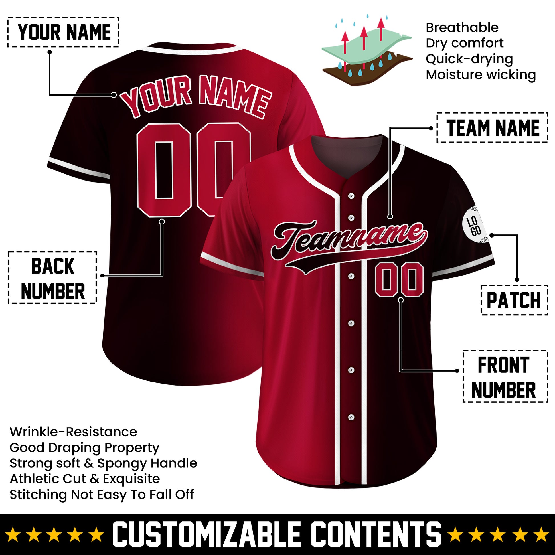 Personalized Crimson Shadow Gradient Baseball Jersey. Design a jersey that is 100% uniquely yours!