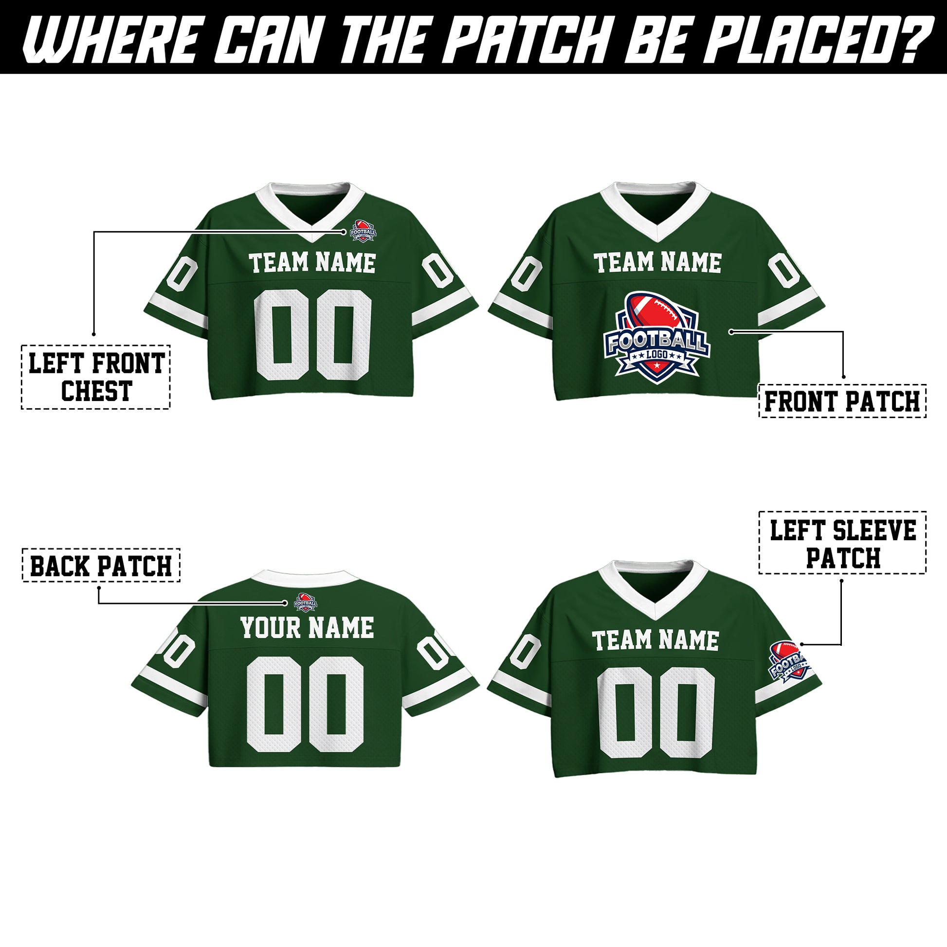 Personalized Green White Cropped Football Jersey, Relaxed Fit Cropped American Football Jersey