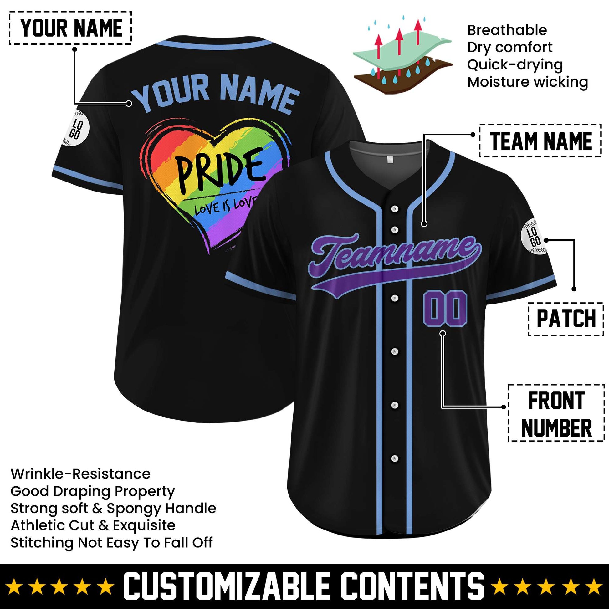 Personalized Love Is Love Pride Rainbow Heart Black Baseball Shirt