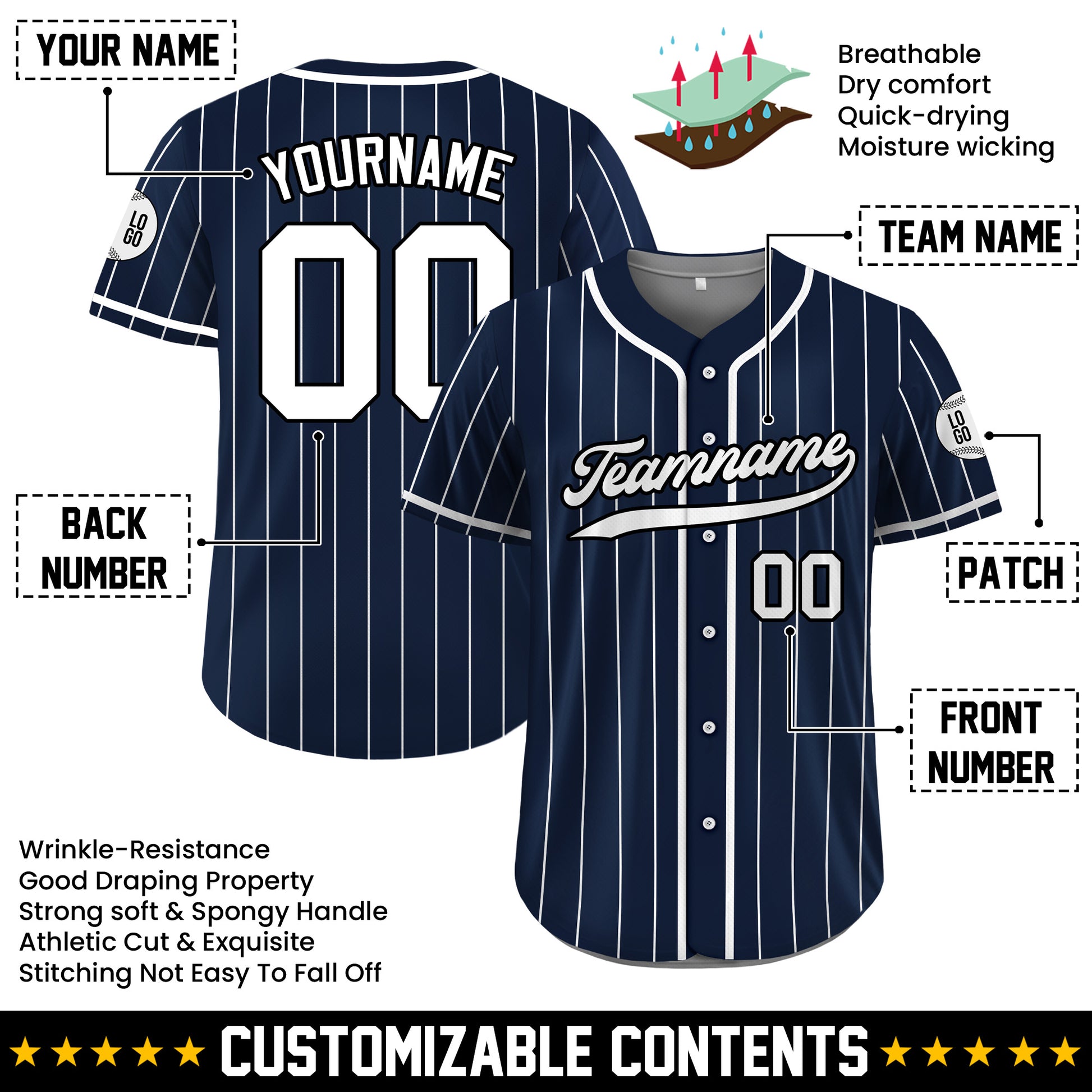 Step onto the field in your own Personalized Navy White Thin Stripe Baseball Shirt, a timeless classic made uniquely for you. This isn't just a shirt—it's your personal statement, blending the authentic feel of game day with a versatile style you can wear anytime.