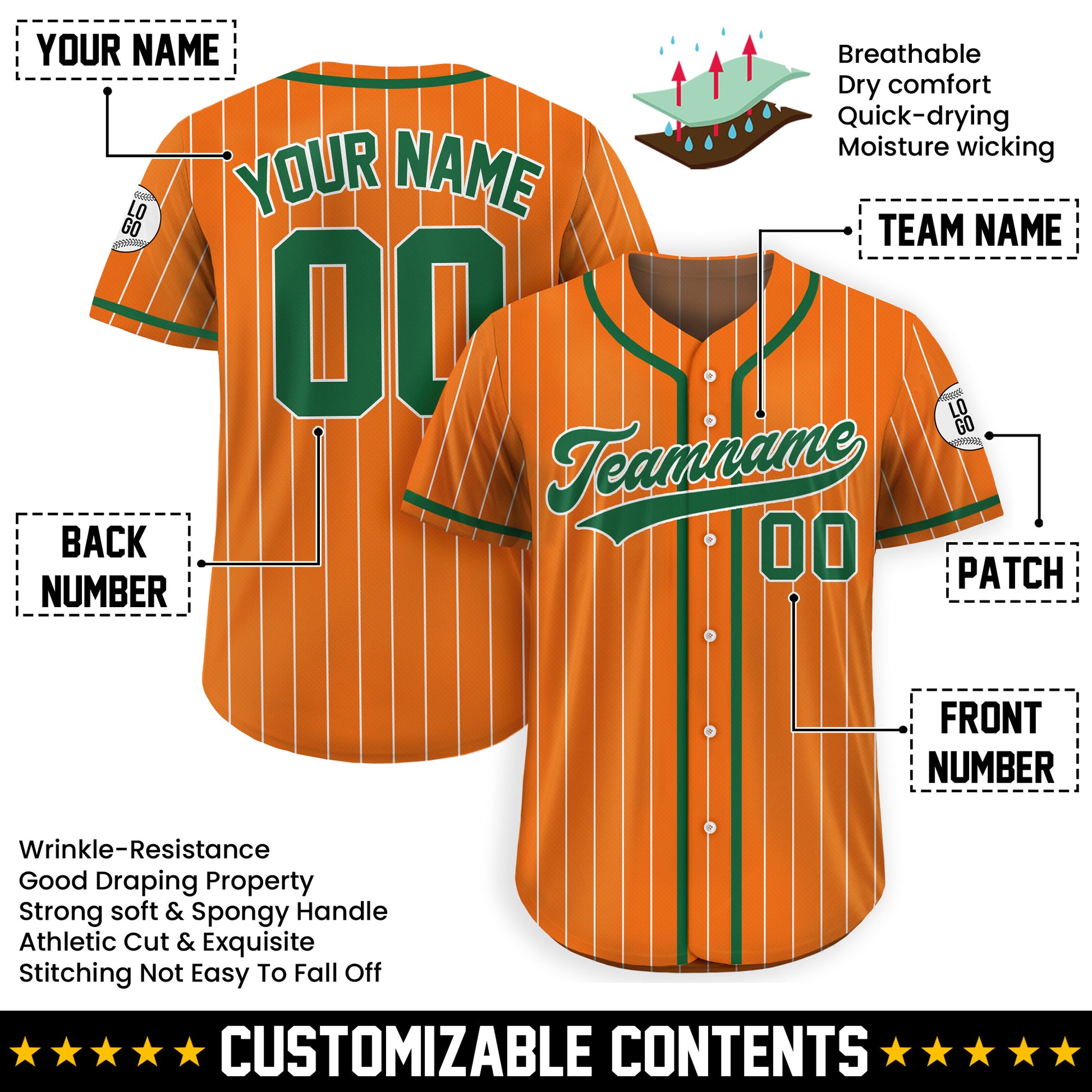 Personalized Orange and Green Pinstripe Baseball Jersey