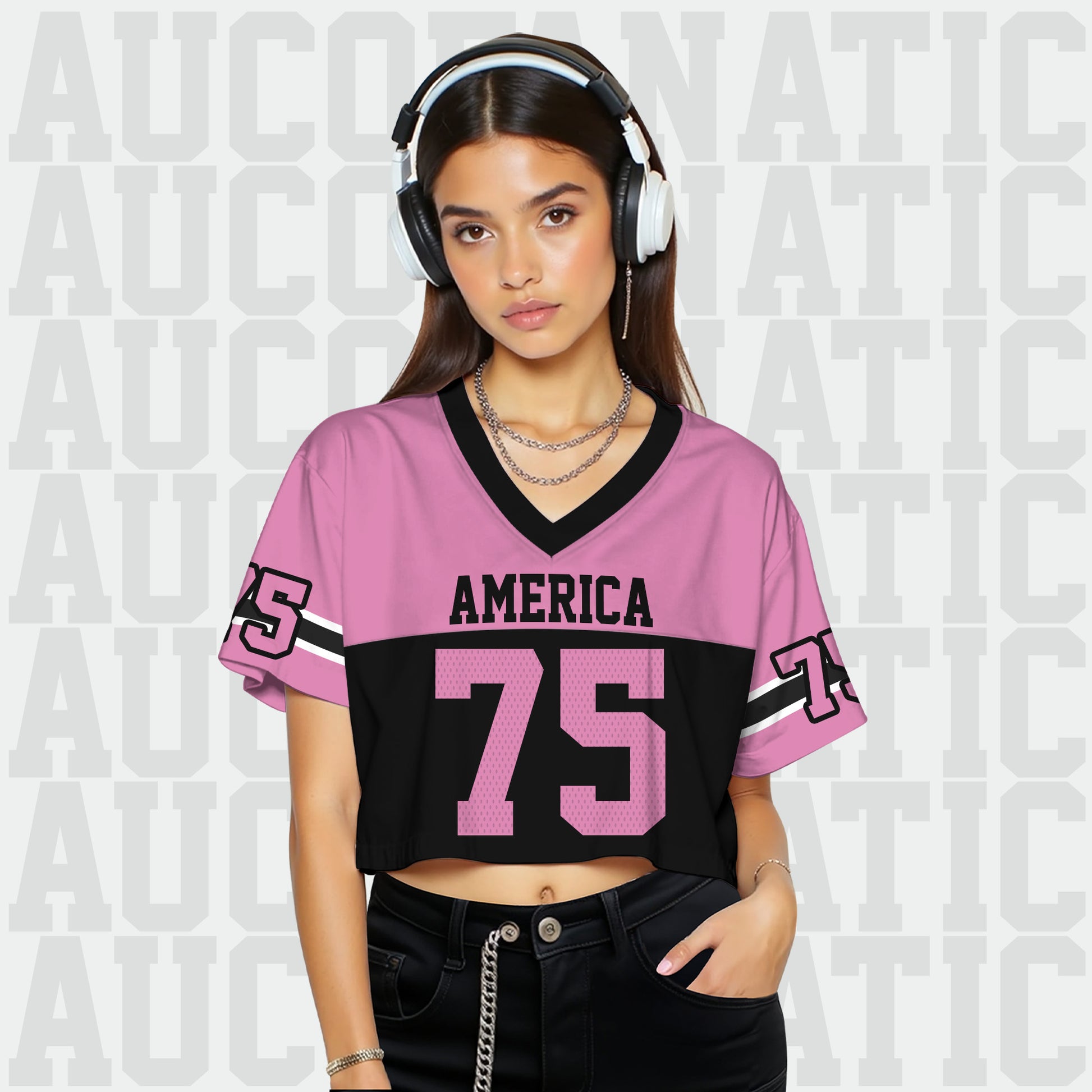 Personalized Pink Black Cropped Football Jersey, Fashionable Cropped Jersey for a Gameday Outfit